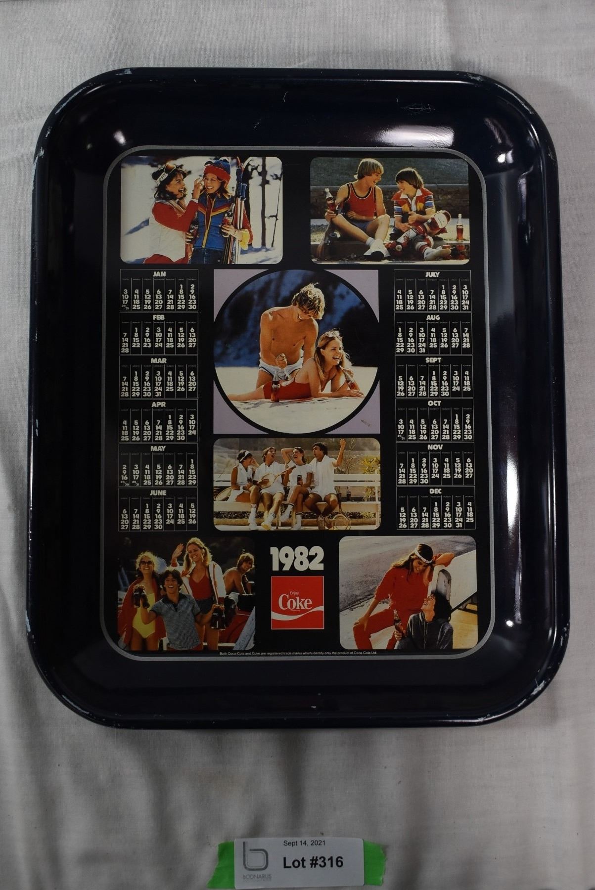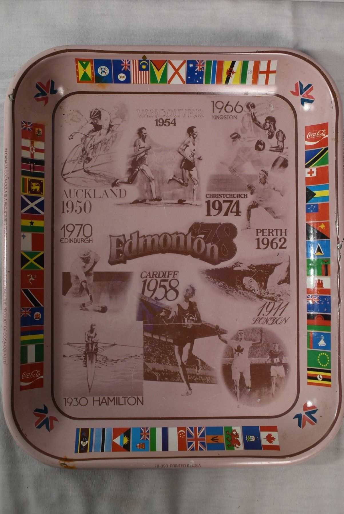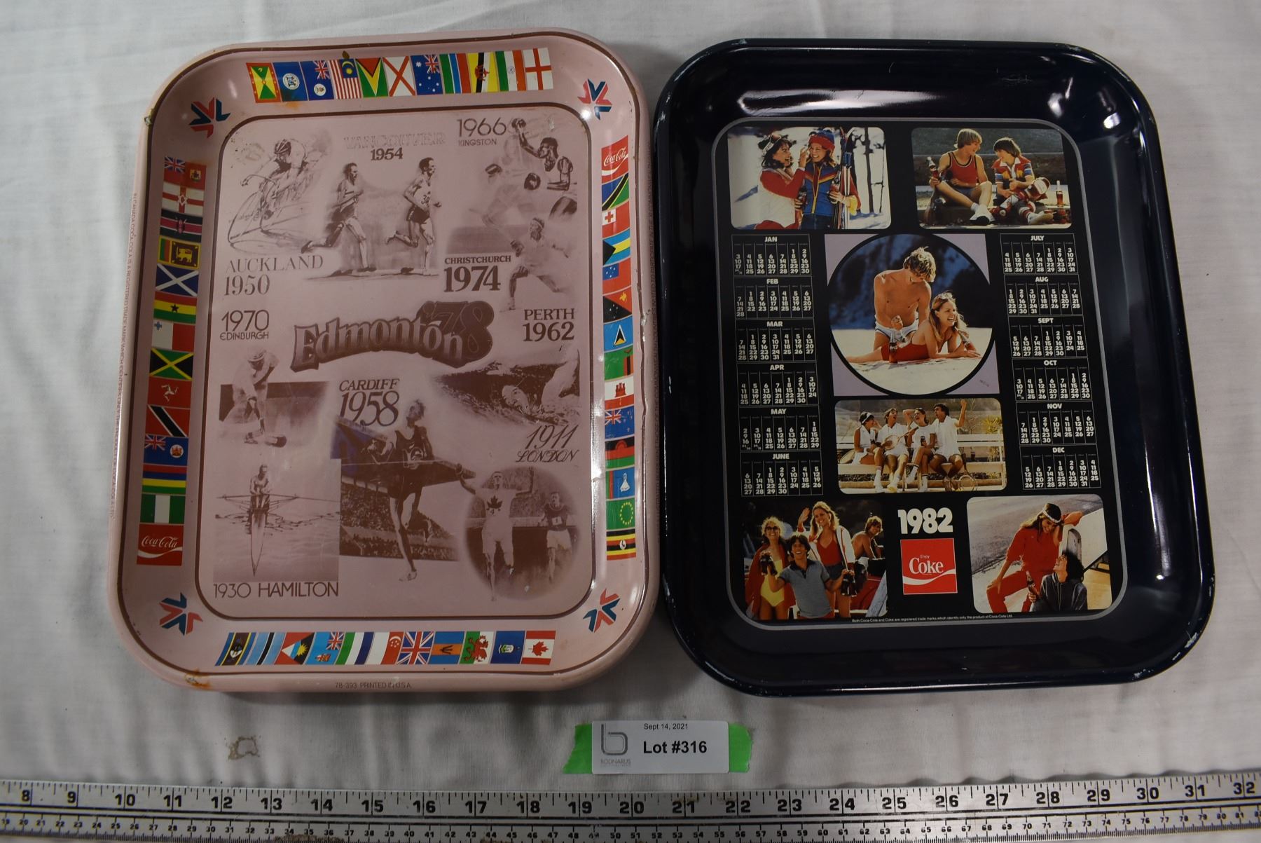 (2 X THE MONEY) Vintage Coca Cola trays 1982 calendar and Edmonton '78 styles.