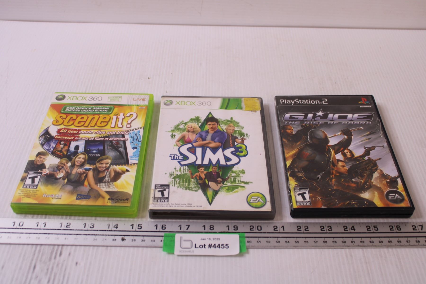 (2) XBOX 360 Video Games: Scene It? & Sims 3 (1) PlayStation 2 Video Game: GI Joe - As Is