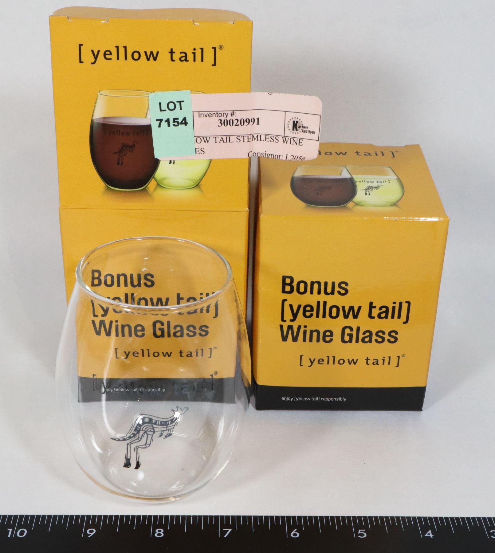 2 YELLOW TAIL STEMLESS WINE GLASSES
