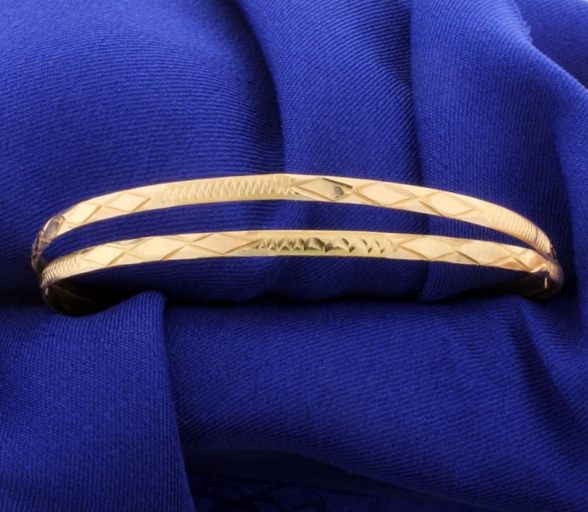 There are three (2) bracelets almost 3mm each in 18k gold. These bracelets are tested to be 18k and are 2-5/8" in diameter.  10.6g
