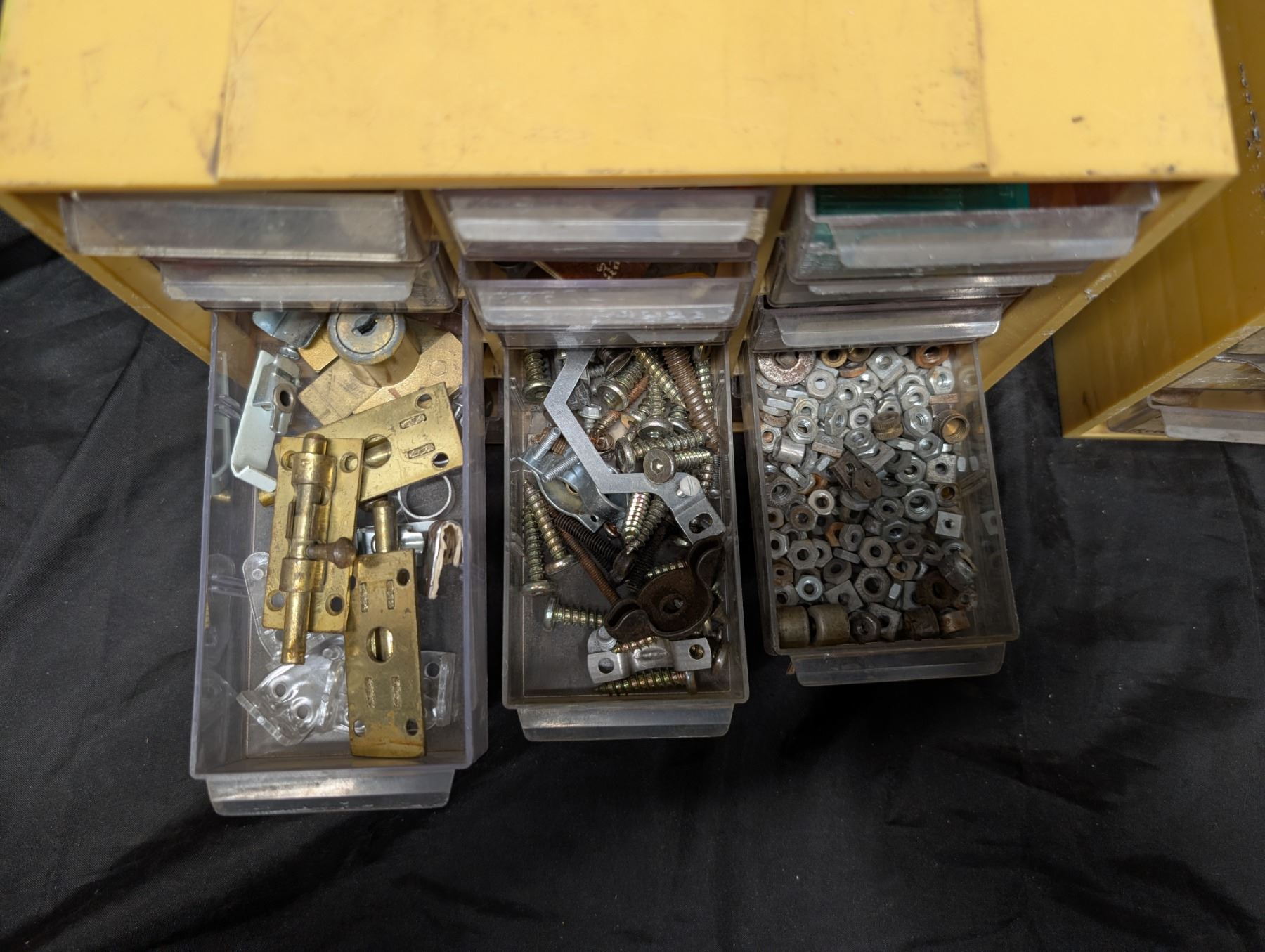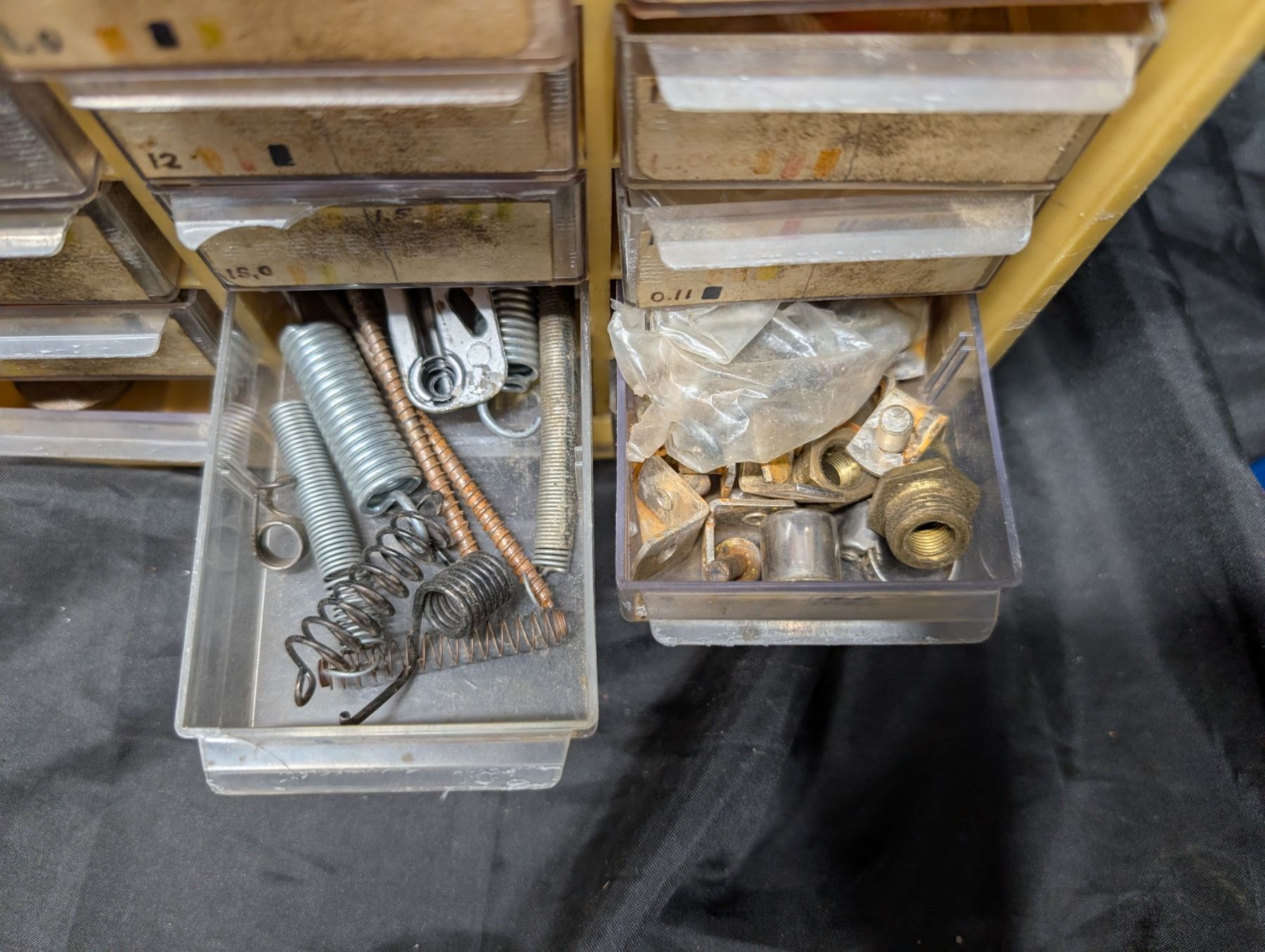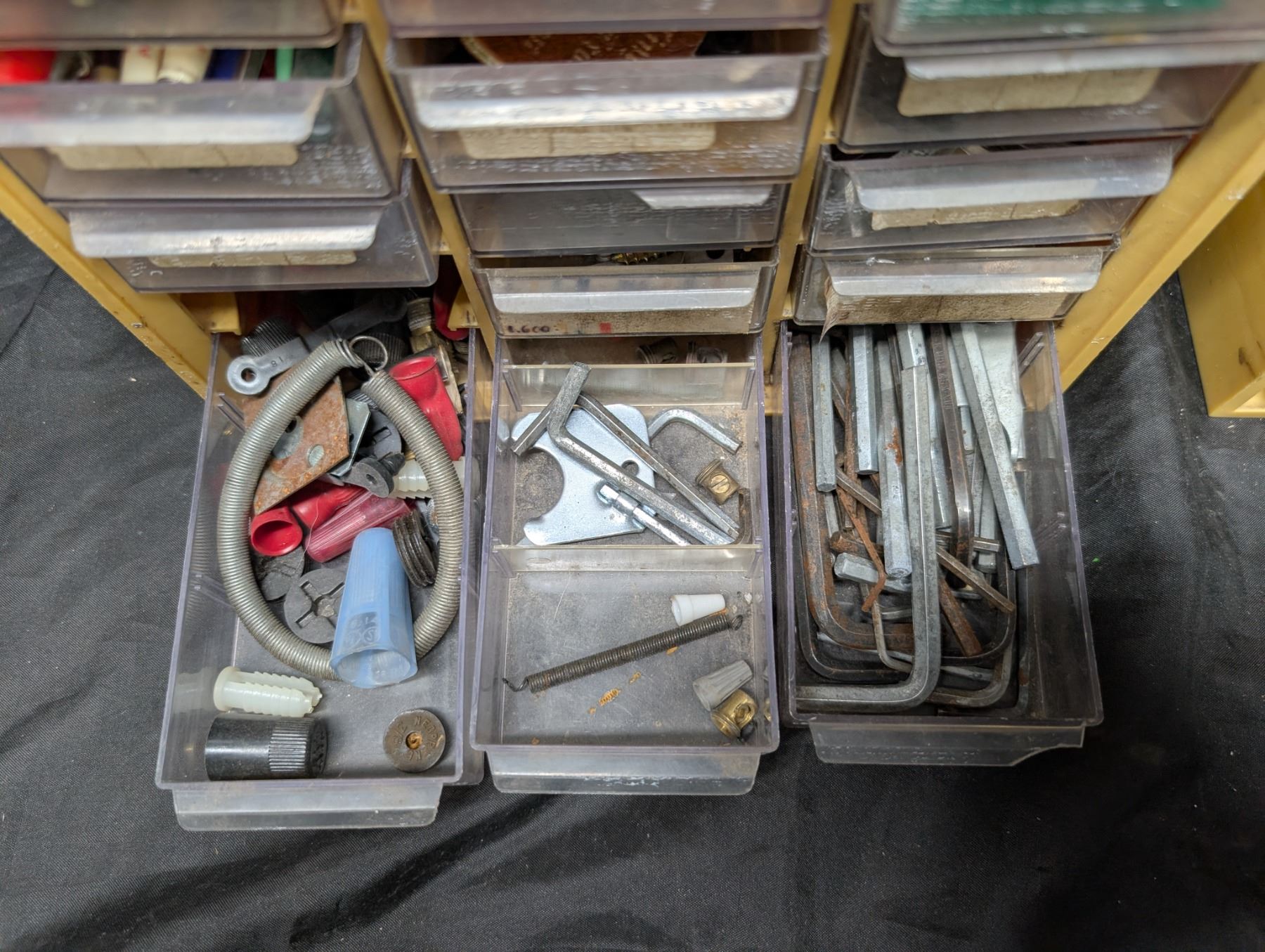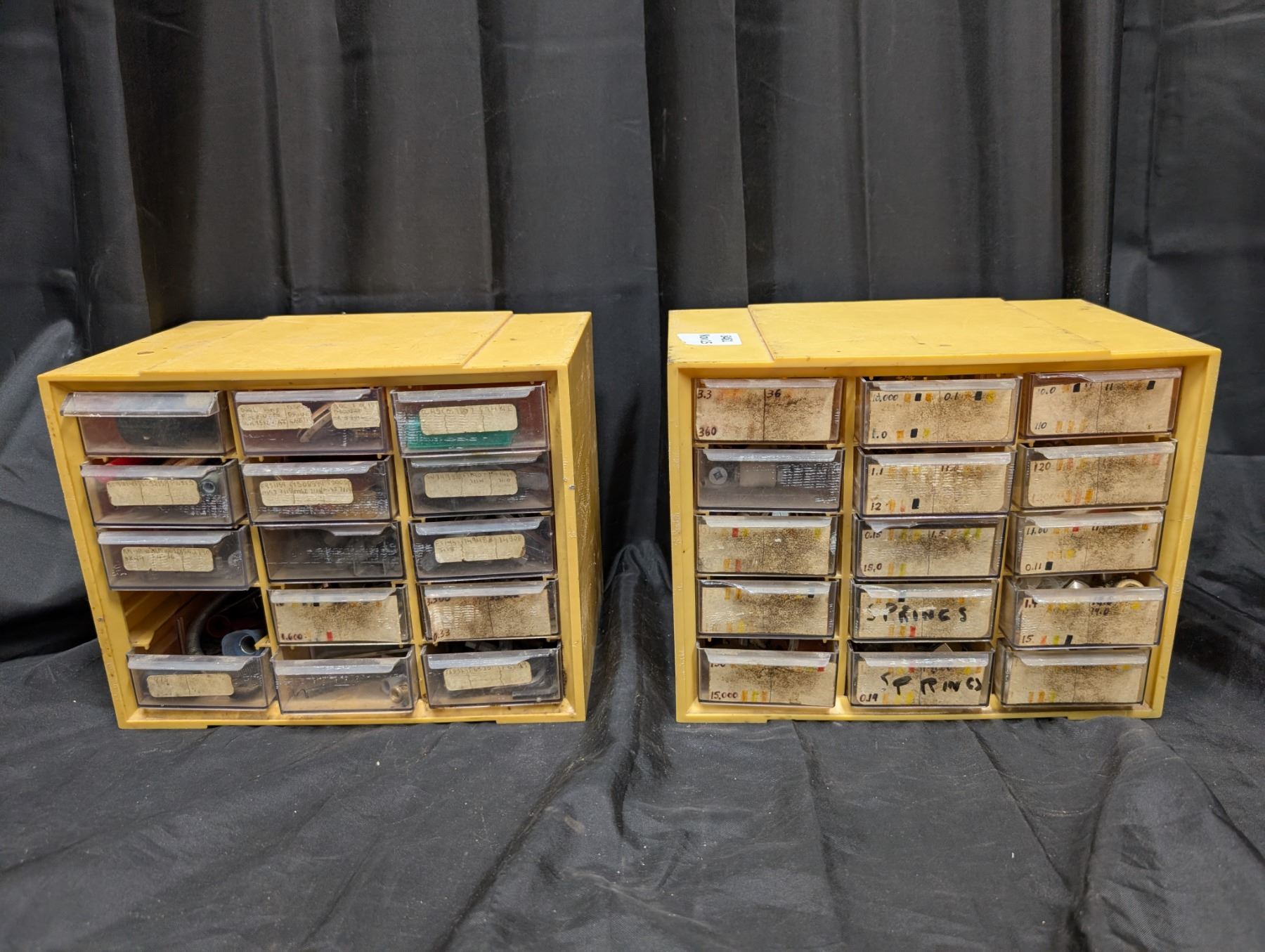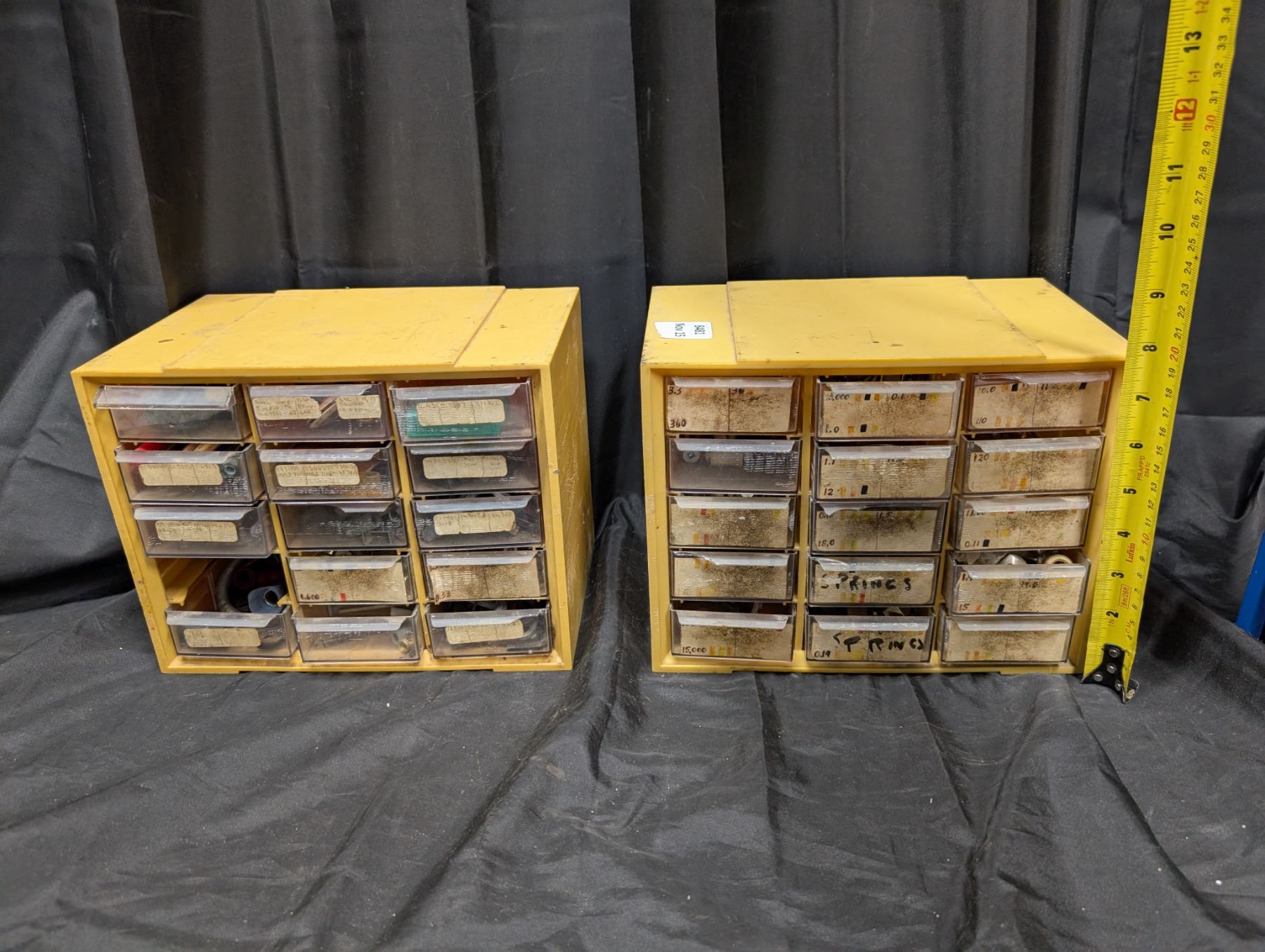 (2) Yellow Storage Units (tools Materials) 8"x10" w/ Misc. Tool Hardware
