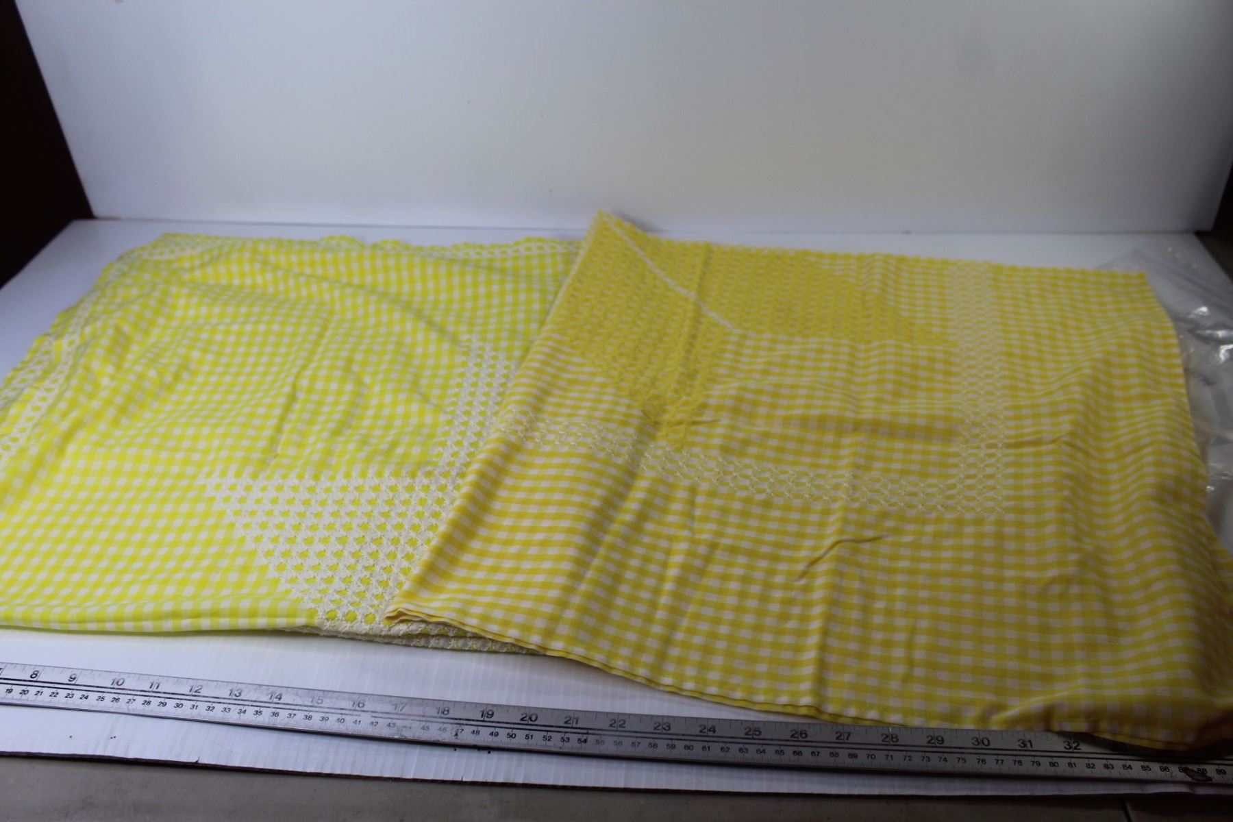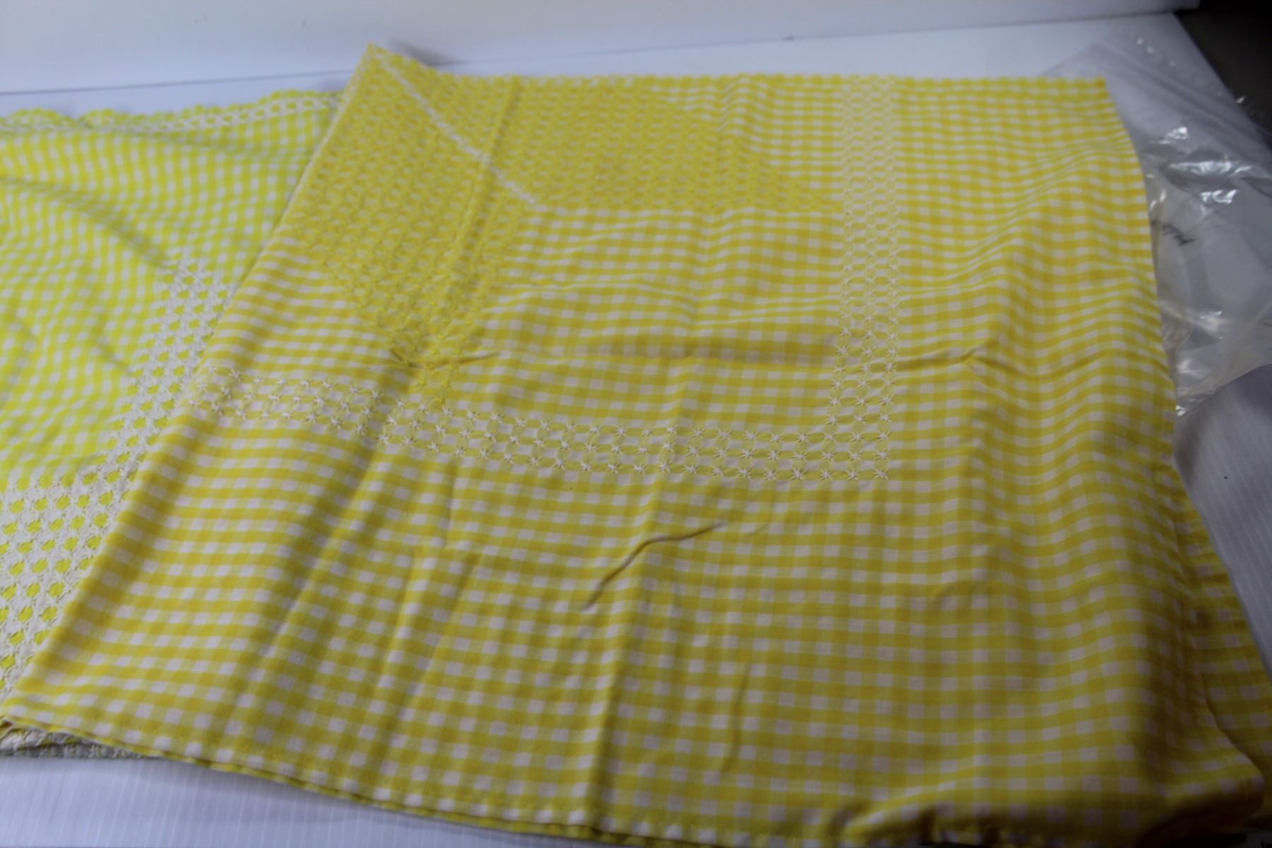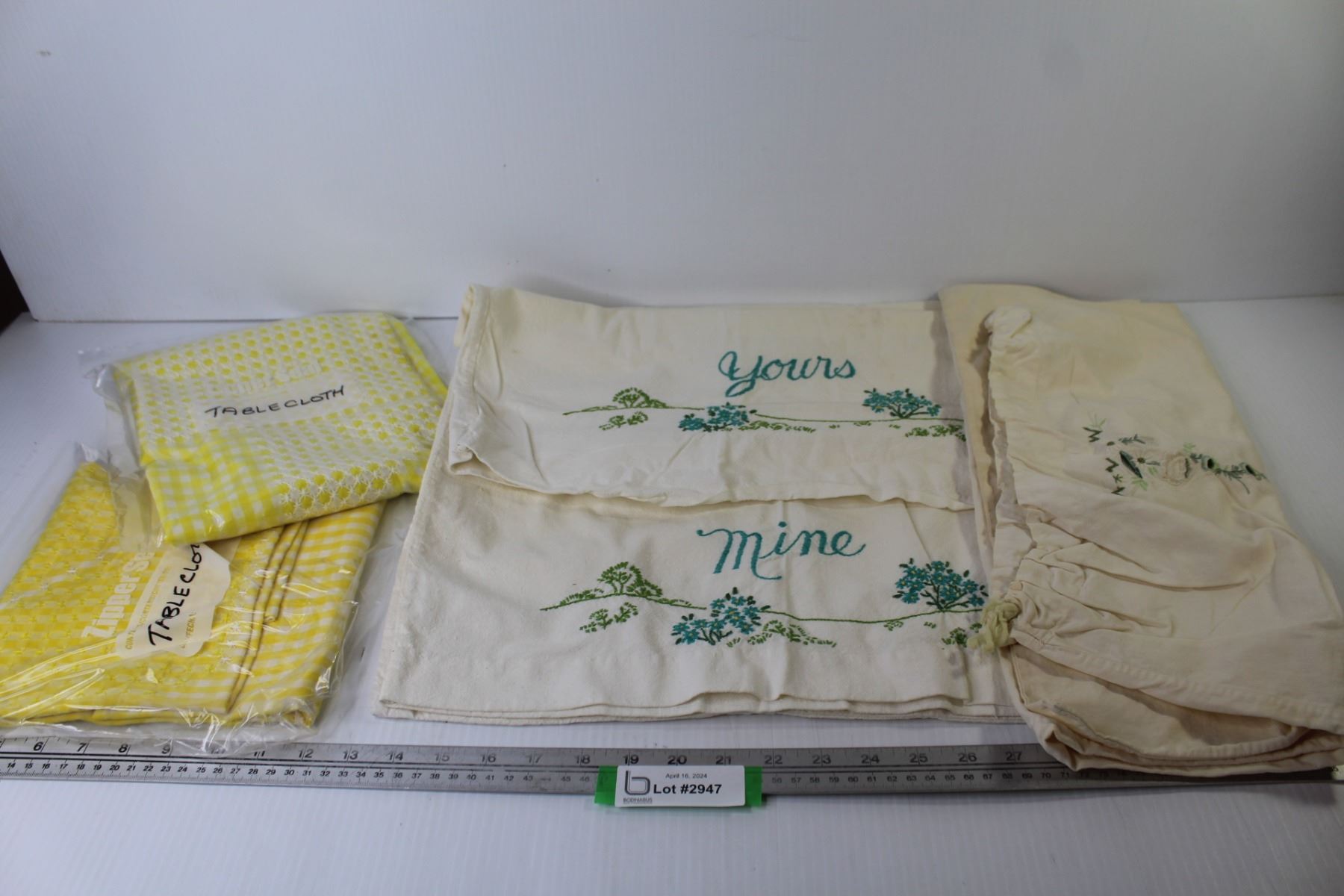 (2) Yours & Mine Flour Bags Cases - Flour Bag Draw String Bag -(2) Yellow Table Cloths (41" x 41" - 41" x 44")