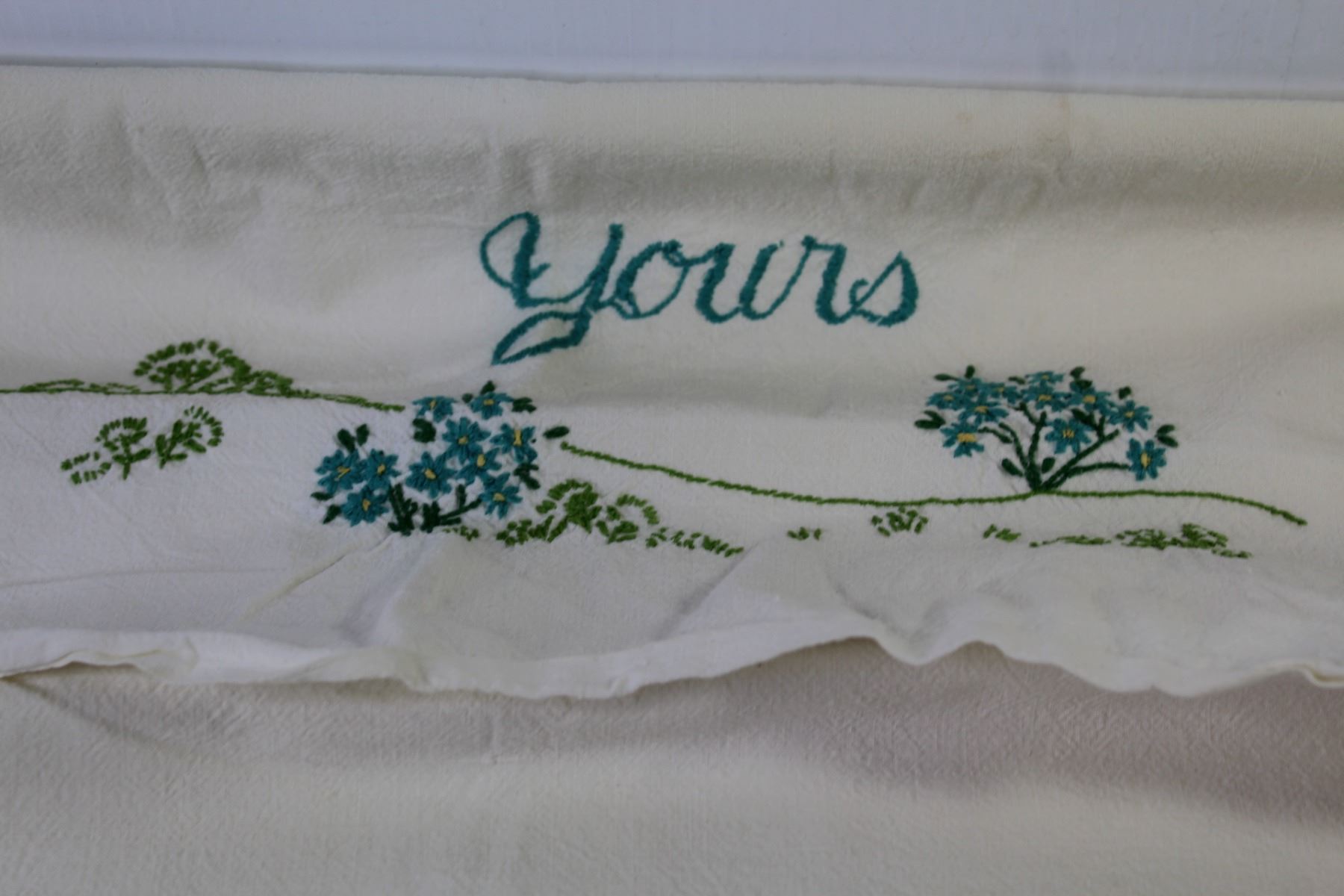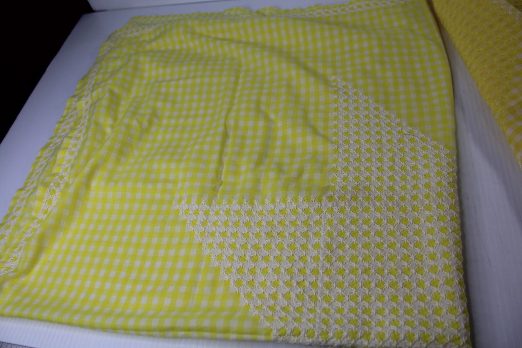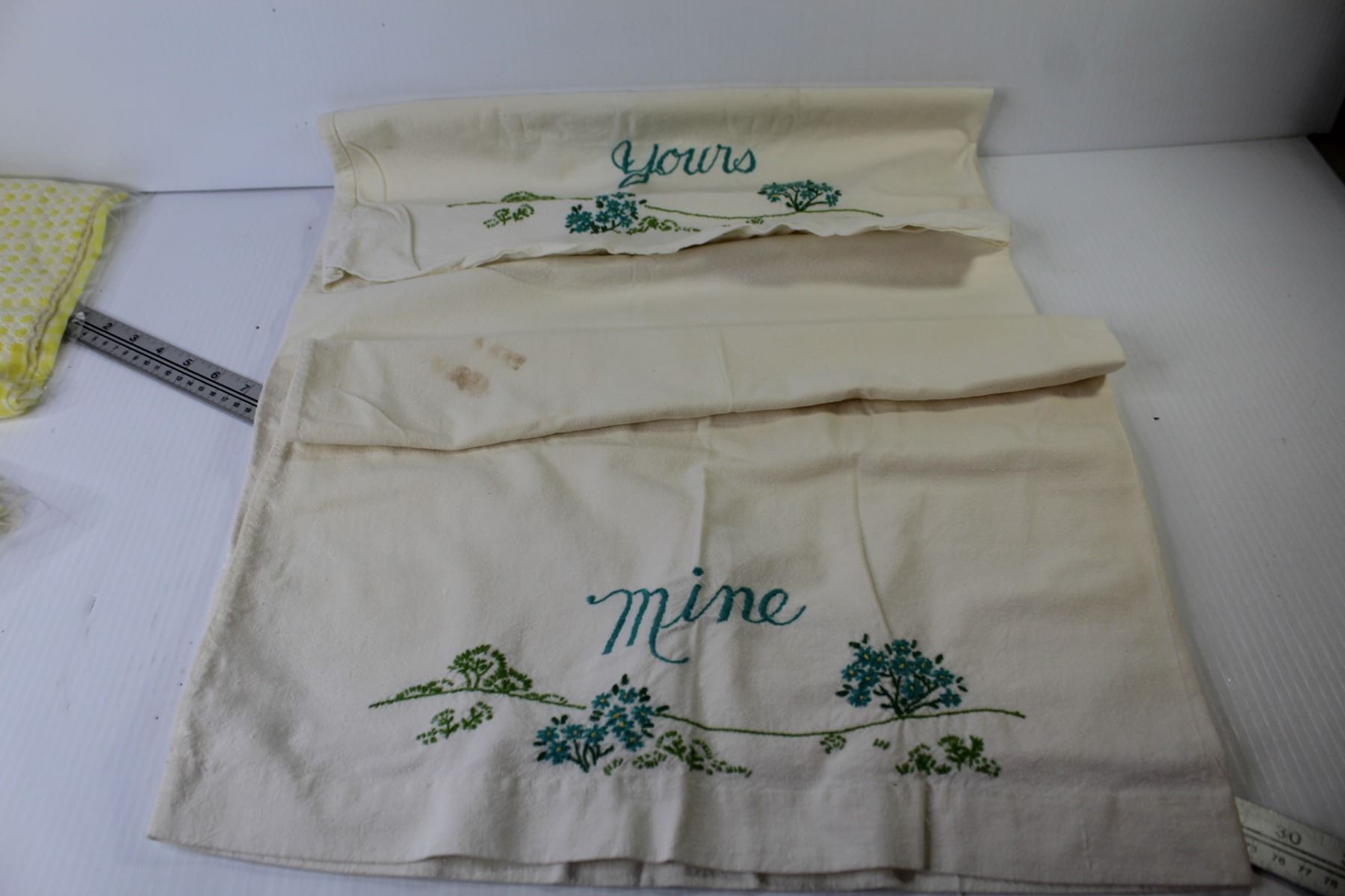 (2) Yours & Mine Flour Bags Cases - Flour Bag Draw String Bag -(2) Yellow Table Cloths (41" x 41" - 41" x 44")