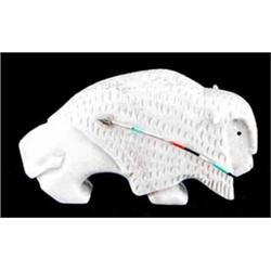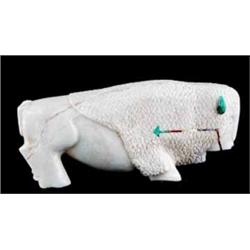 Pair of Zuni Indian Alabaster Buffalo Carvings With Inlay Work. 3.5" x 6" & 5" x 11". Estimate $800 - $1,000.