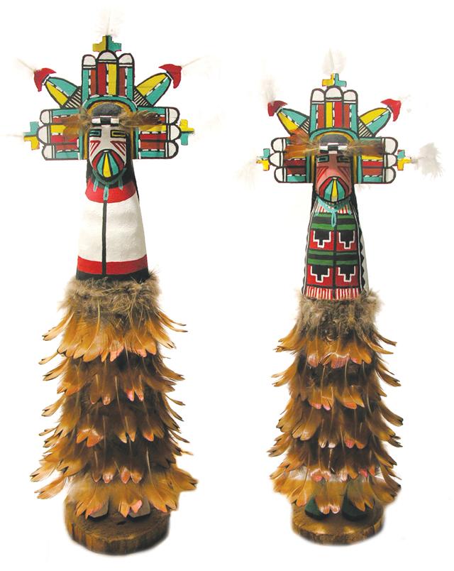 Circa 1970, Kenny Shupla, Elegant pair of Butterfly Maiden kachinas mounted in clear showcase. 13"