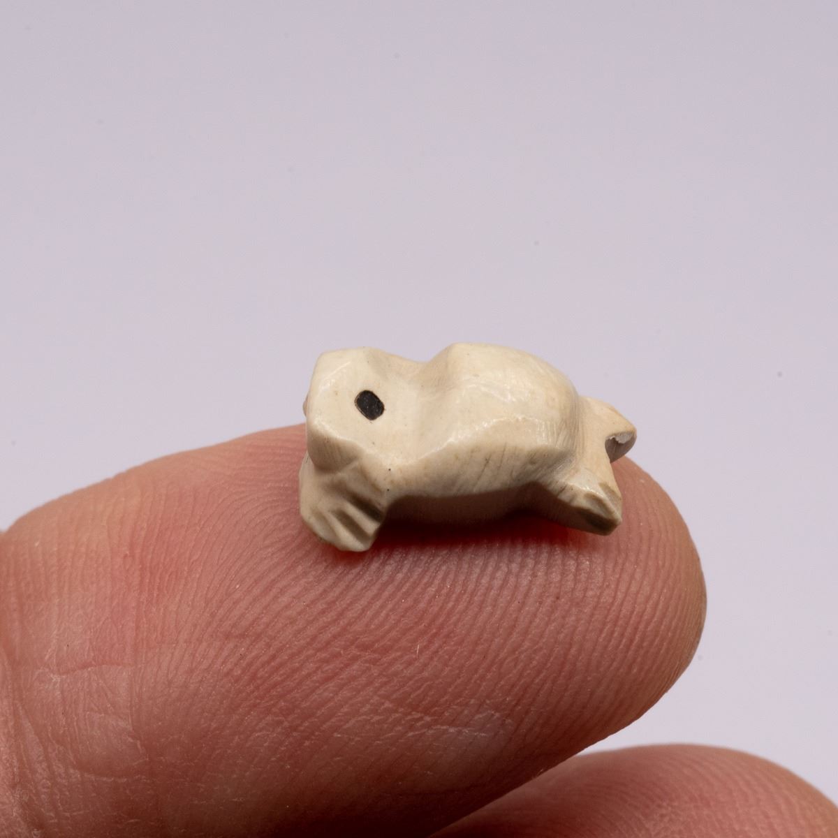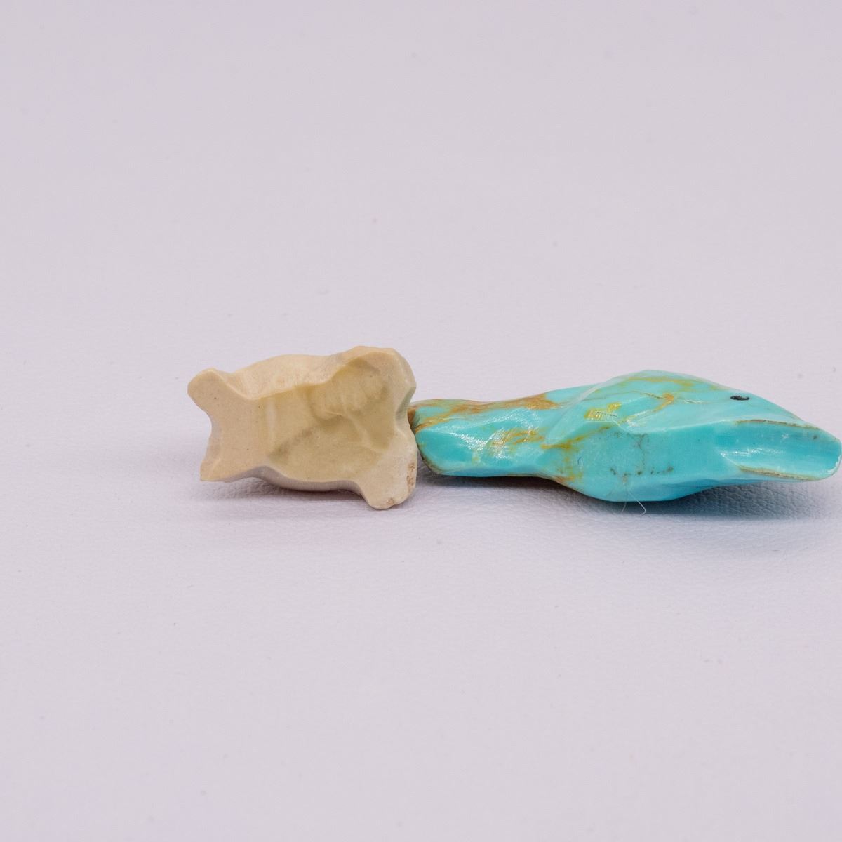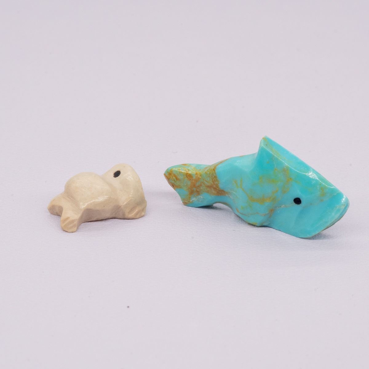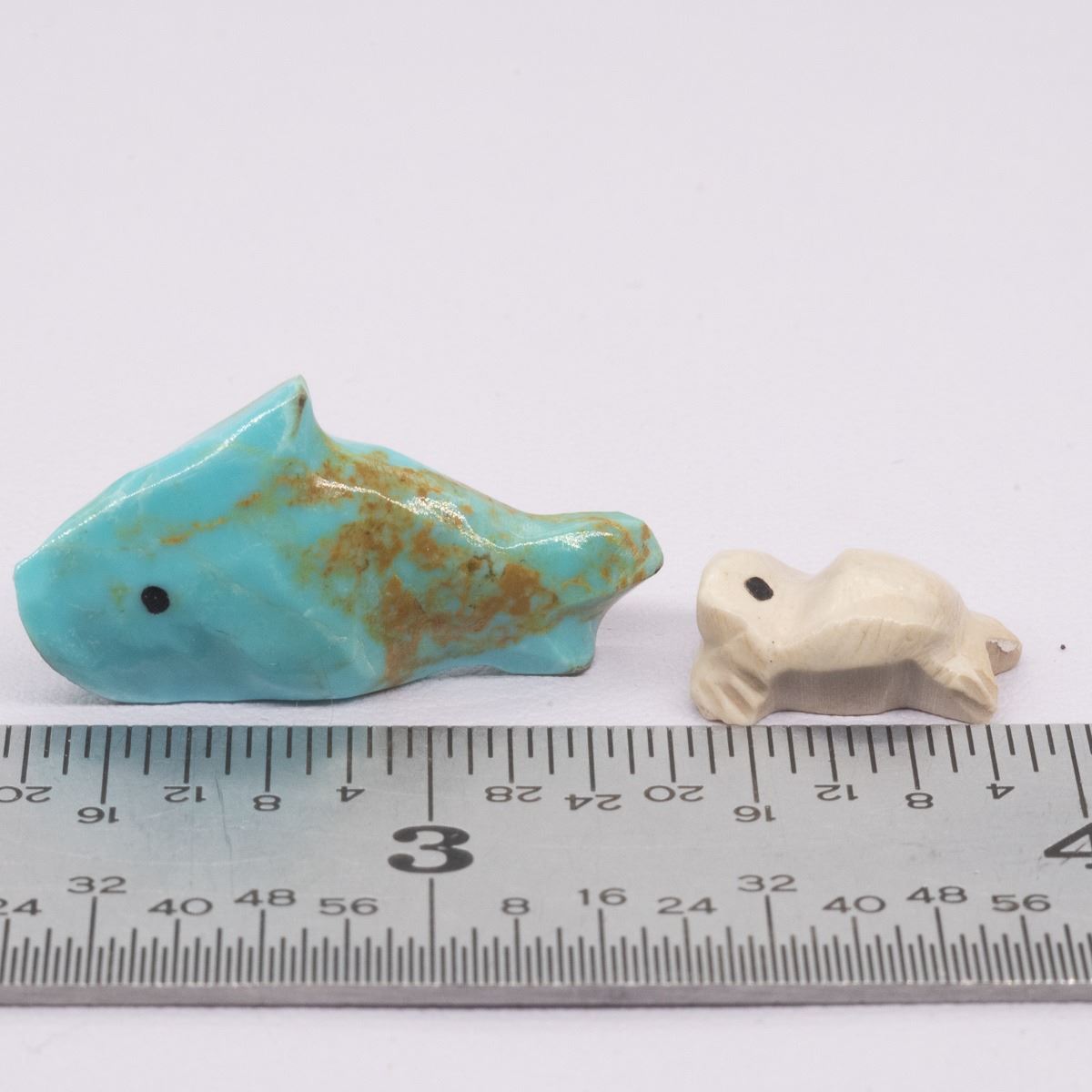 2 Native American Zuni Miniature Fetishes by Pinto, includes seal and turquoise fish, longest measures 1''L