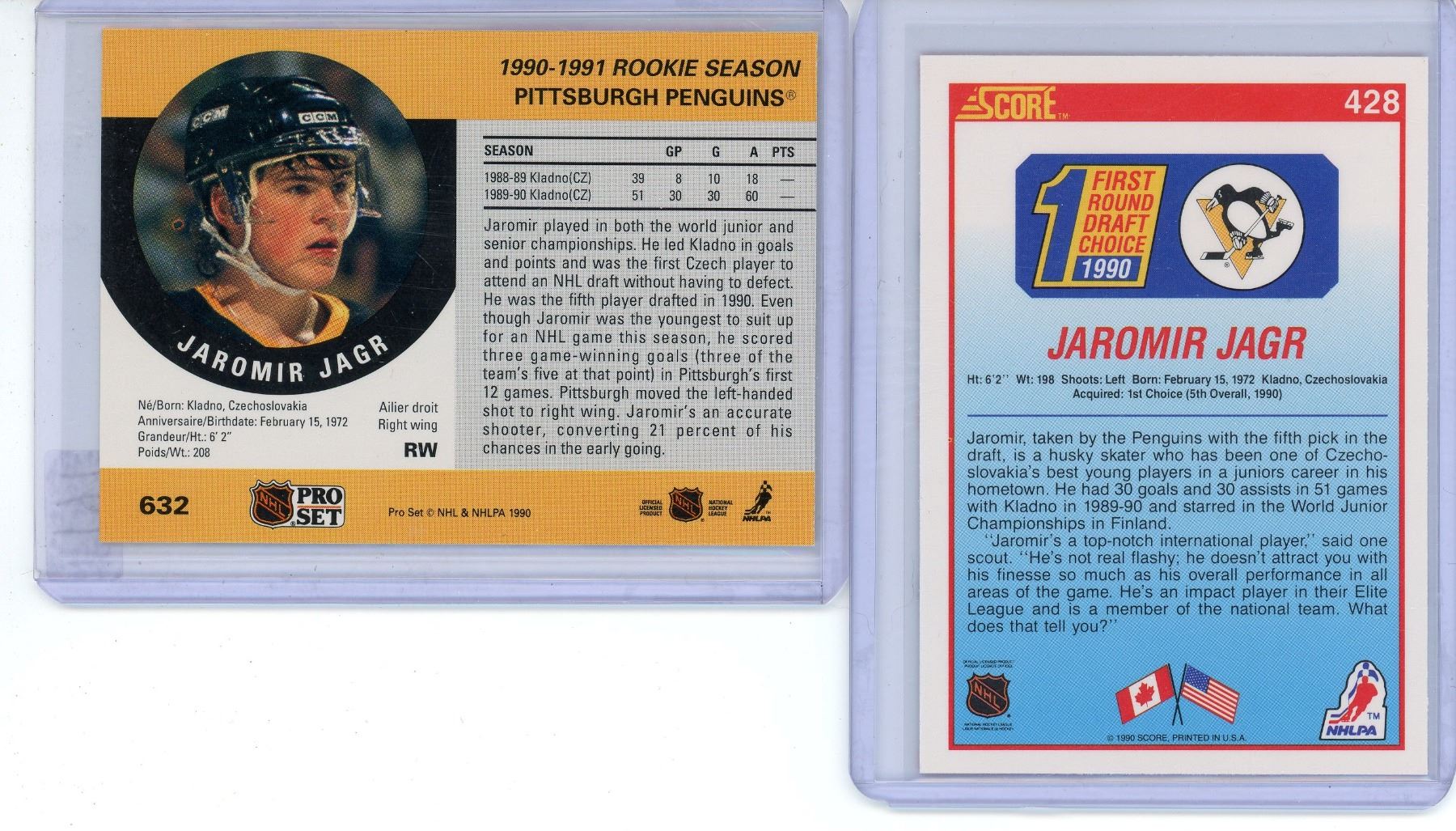 2 assorted, Jaromir Jagr rookie cards