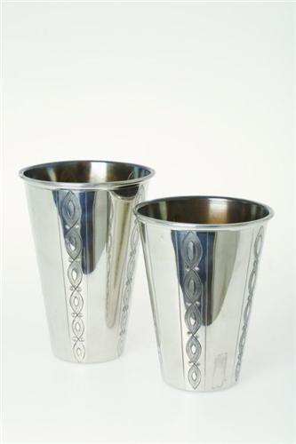 2 bägare, tenn, handciselerade, stämplat: Göthlin