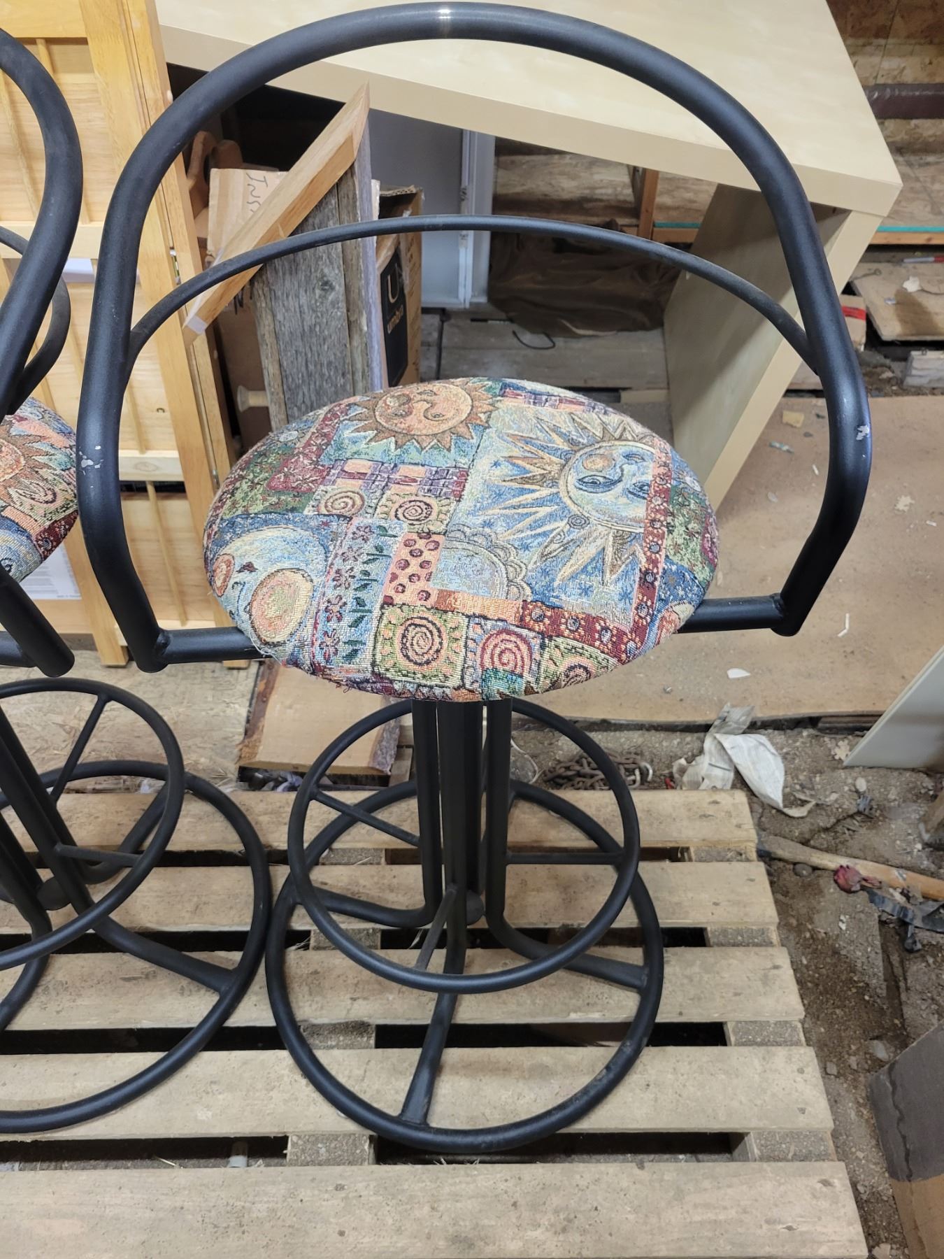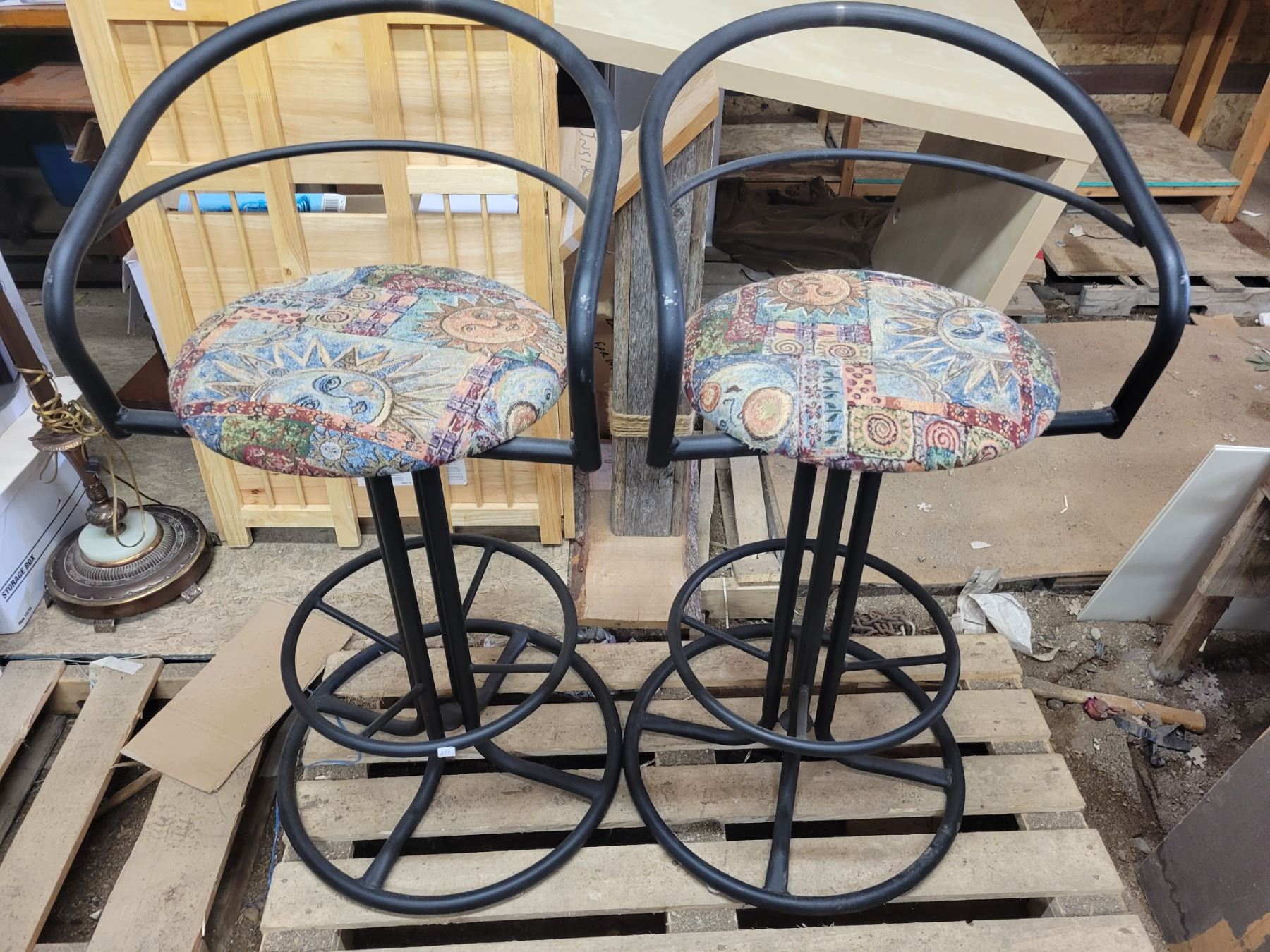 2 bar height swivel stools with cushioned seats and back rests, metal - solid