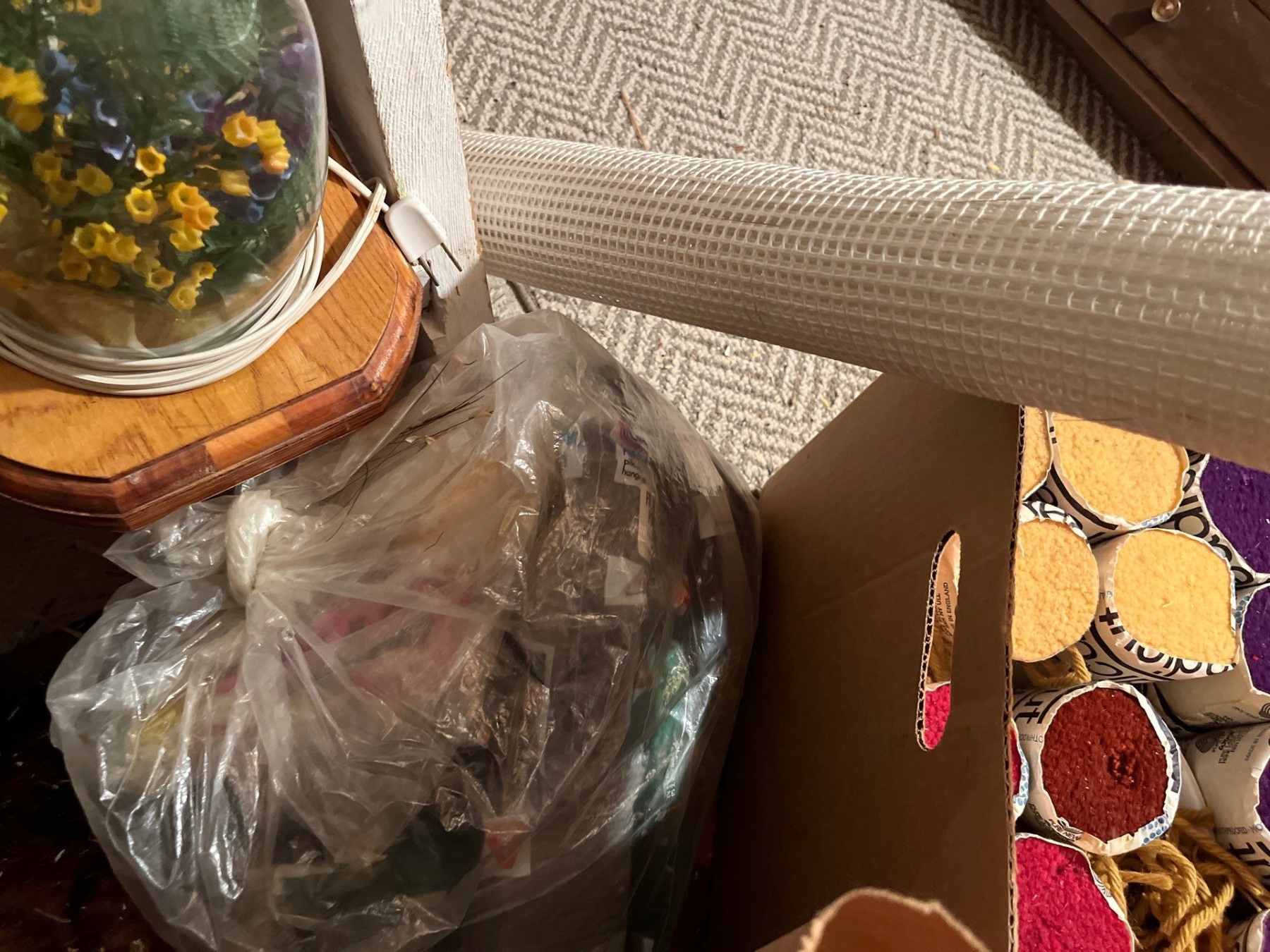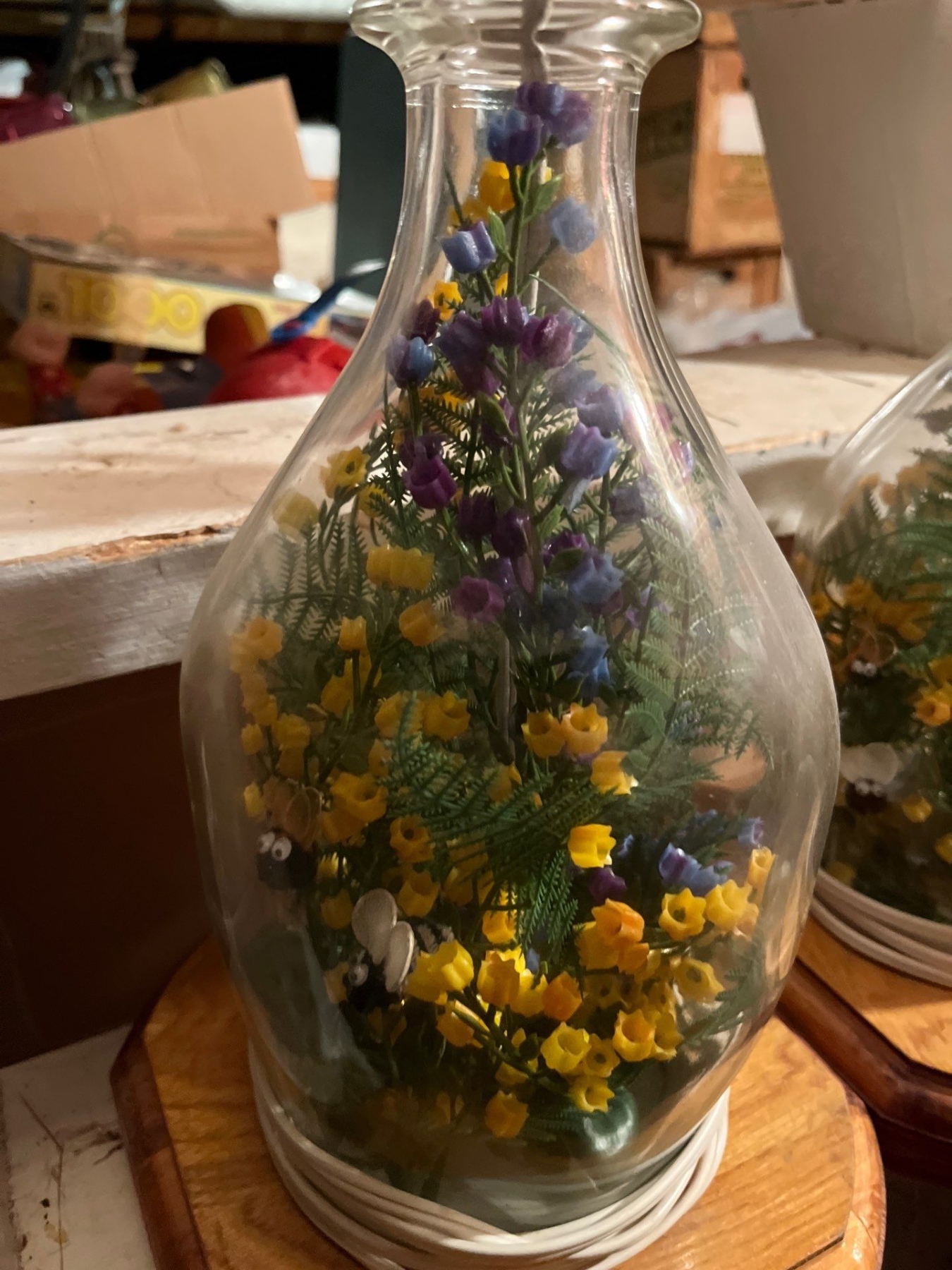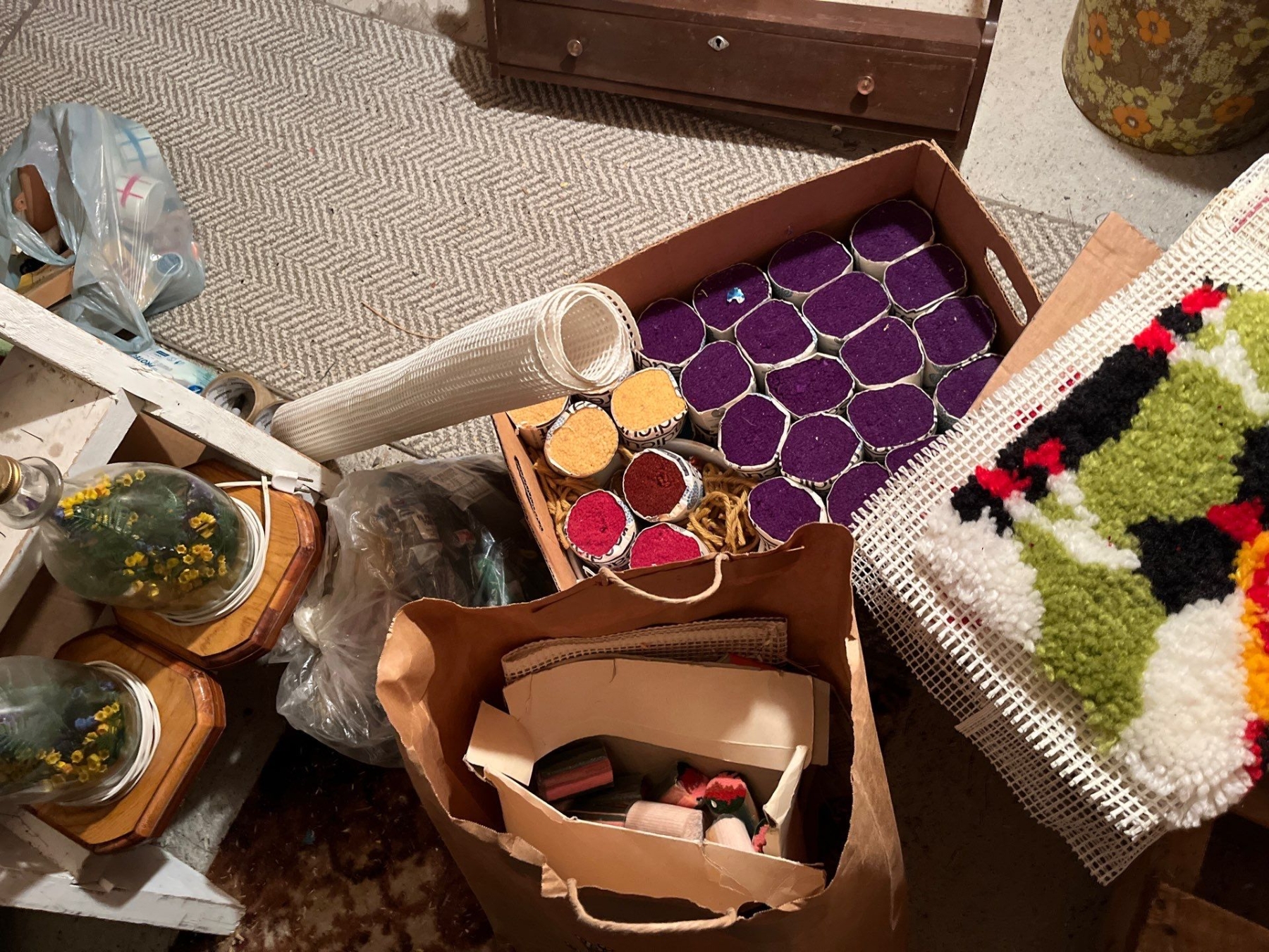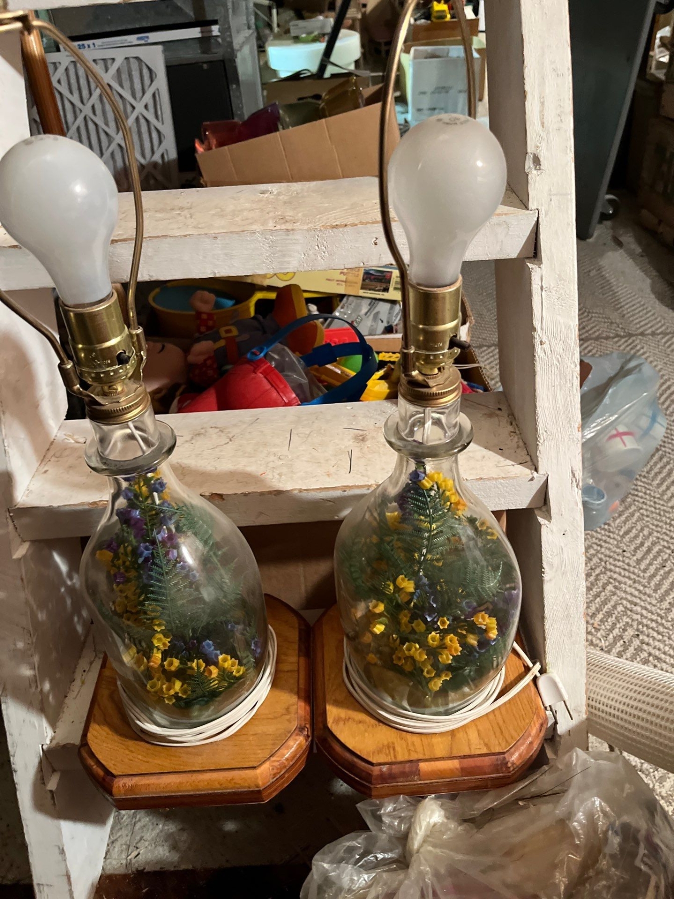 2 beautiful glass, lamps and large selection of Crosstitch and needle point patterns, including yarn