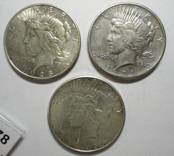 2 better date AU Peace $ 1925S-28S also a VF/XF 1921