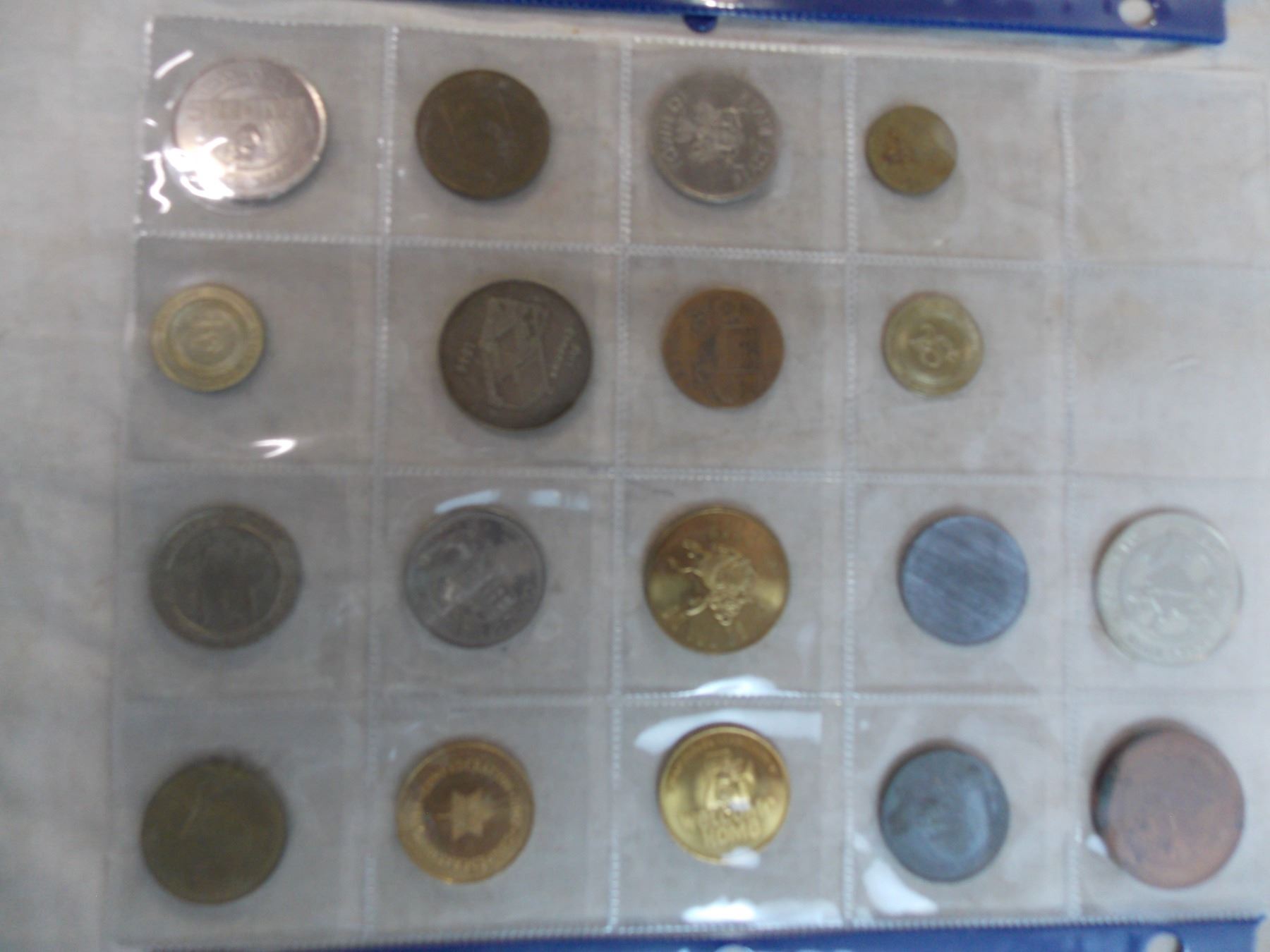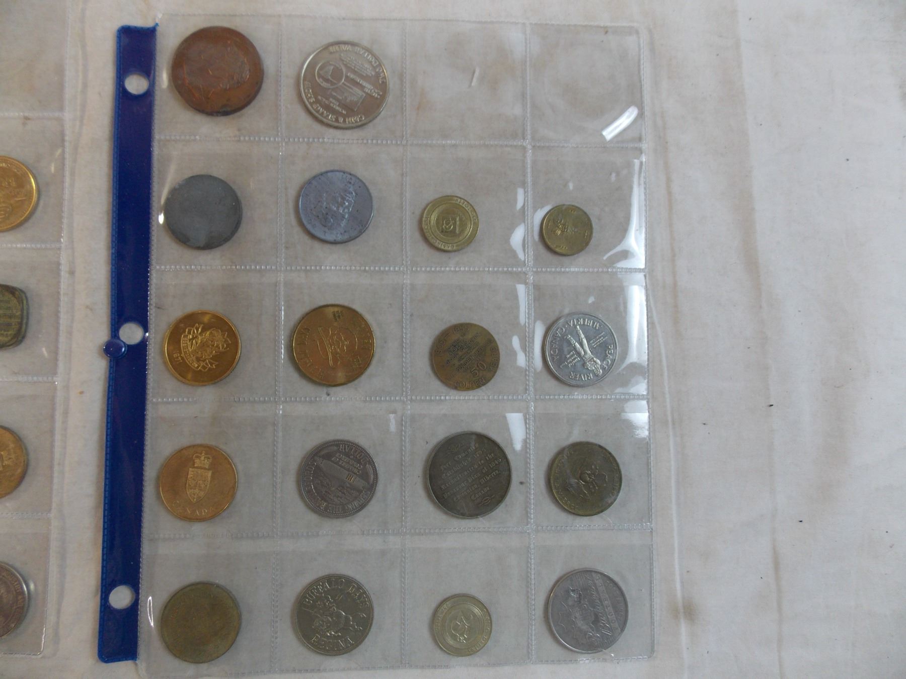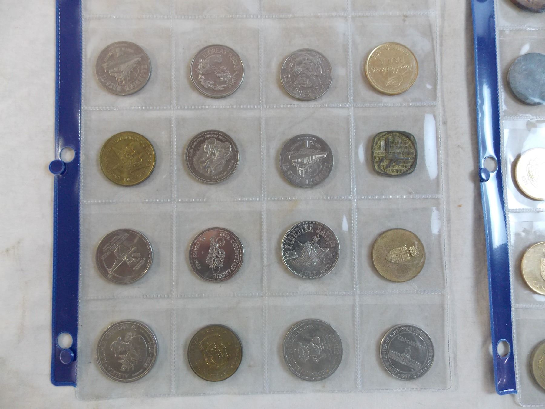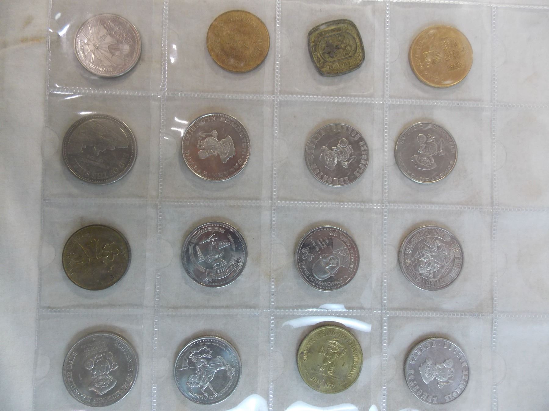 (2) binder pages of novelty coins - buffalo days, klondike days, variety