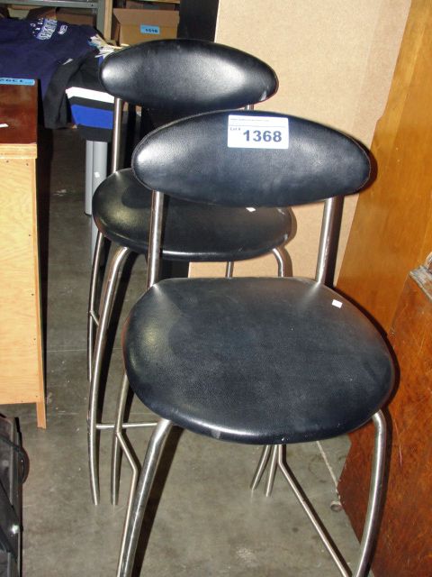 2 black leather bar stools