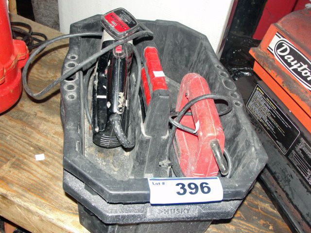 2 black tool carrying boxes with 2 jigsaw