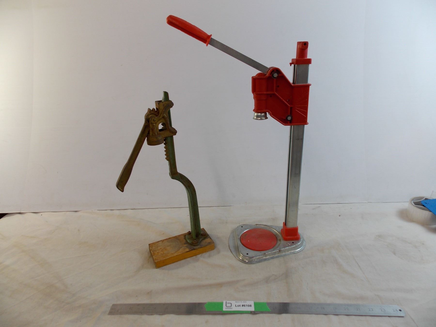 (2) bottle cappers (newer one approx 20" tall)