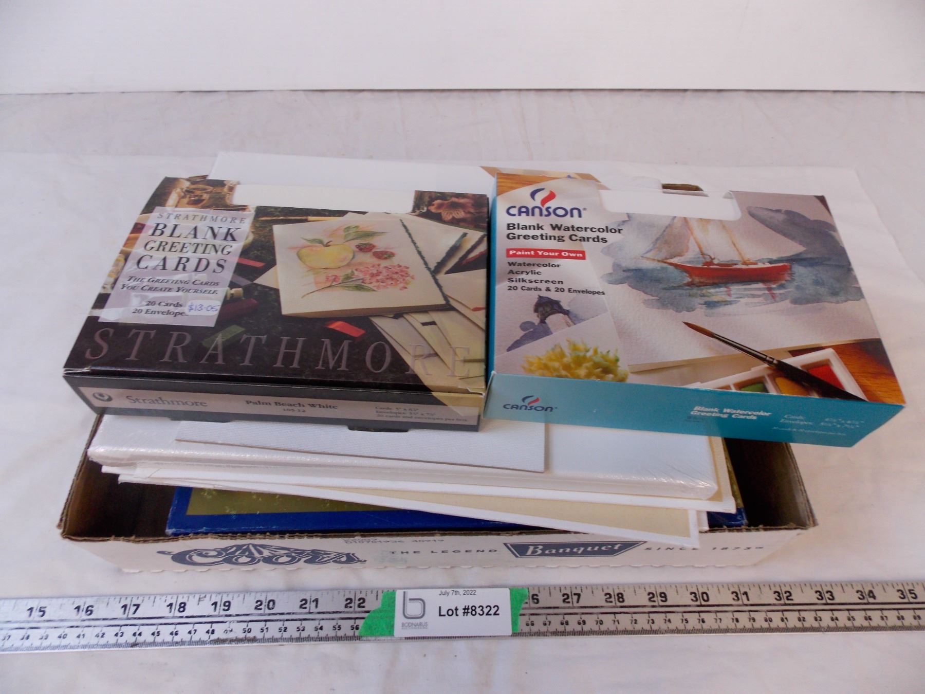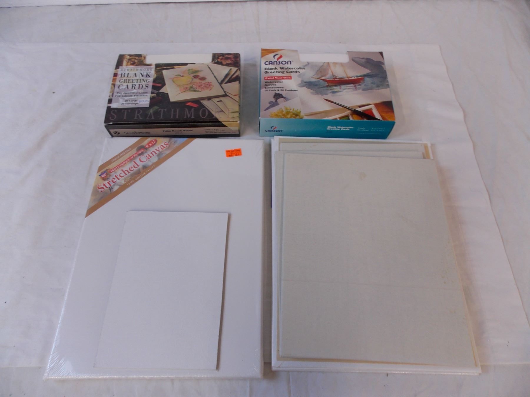 (2) boxes blank greeting cards, asstd sizes of stretched canvas