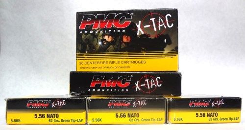 2 boxes of 20 cartridges of Winchester 5.56mm and 5 boxes of 20 PMC Centerfire