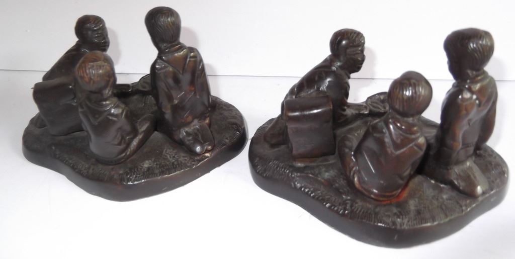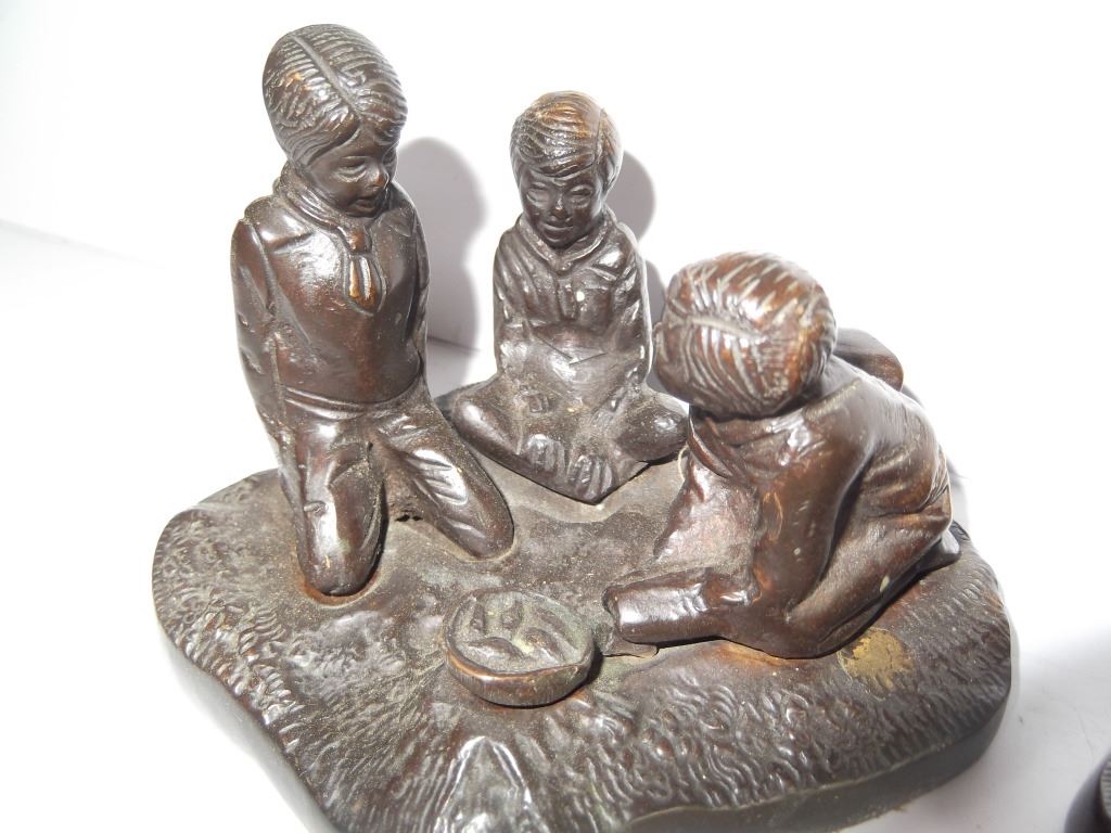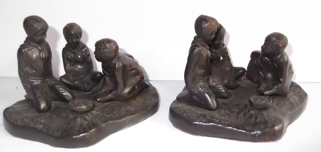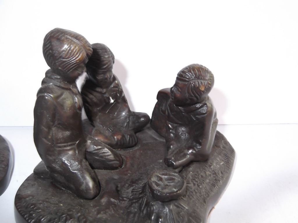 2 bronze boy scouts statues. No markings. 3 1/2 inches x 5 inches.