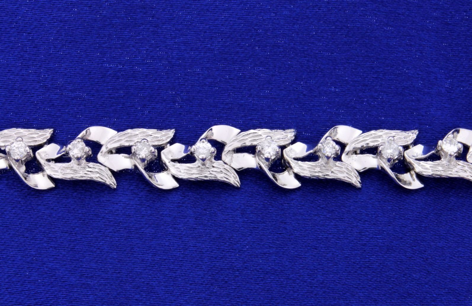 This gorgeous 14k white gold bracelet is set with 2 carats of diamonds! There are 20 brilliant cut, SI1-2 clarity and G-H-I color, diamonds set into a leaf like pattern. 7 1/8 inches long. 14.7g