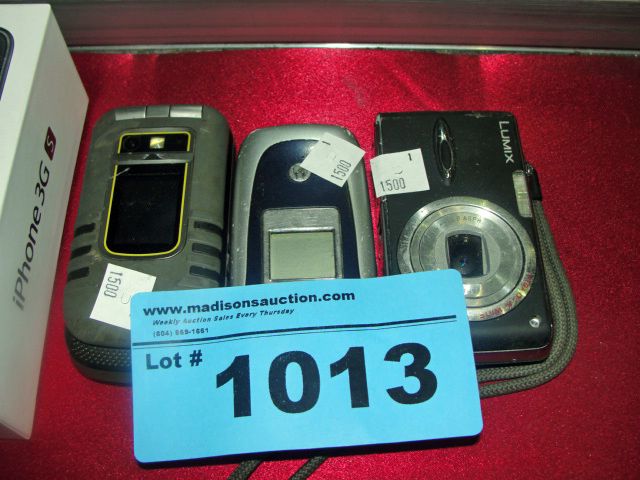 2 cell phones and one digital camera
