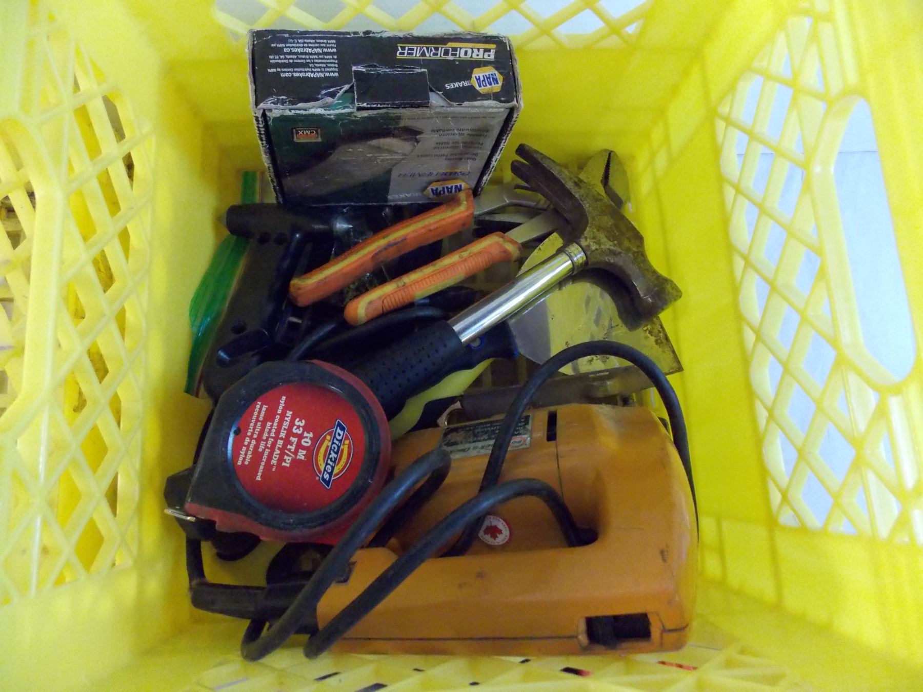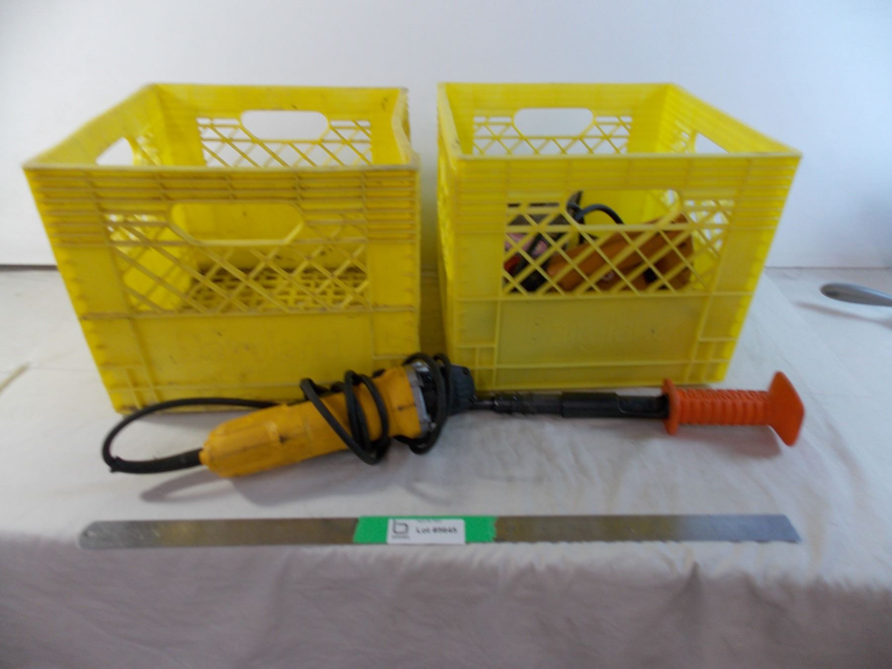 (2 crates) Dewalt drill (works, missing lock nut) + black&decker jigsaw + misc tools