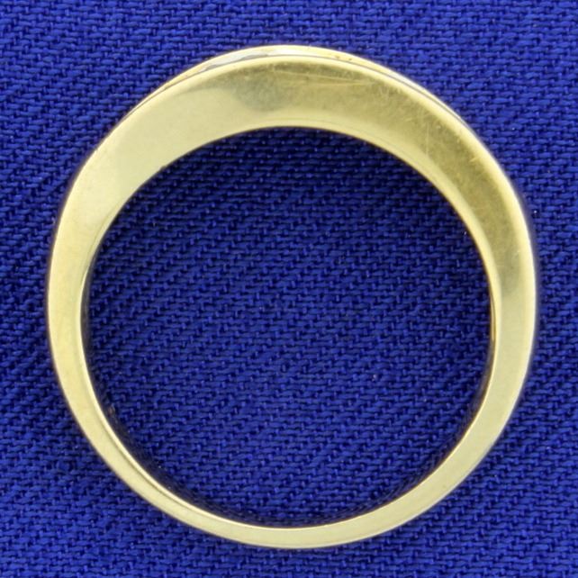 In 14K yellow gold, there are thirty-six high quality invisible set 2mm square champagne diamonds - with excellent VS clarity. Size 7 1/4 5.2g