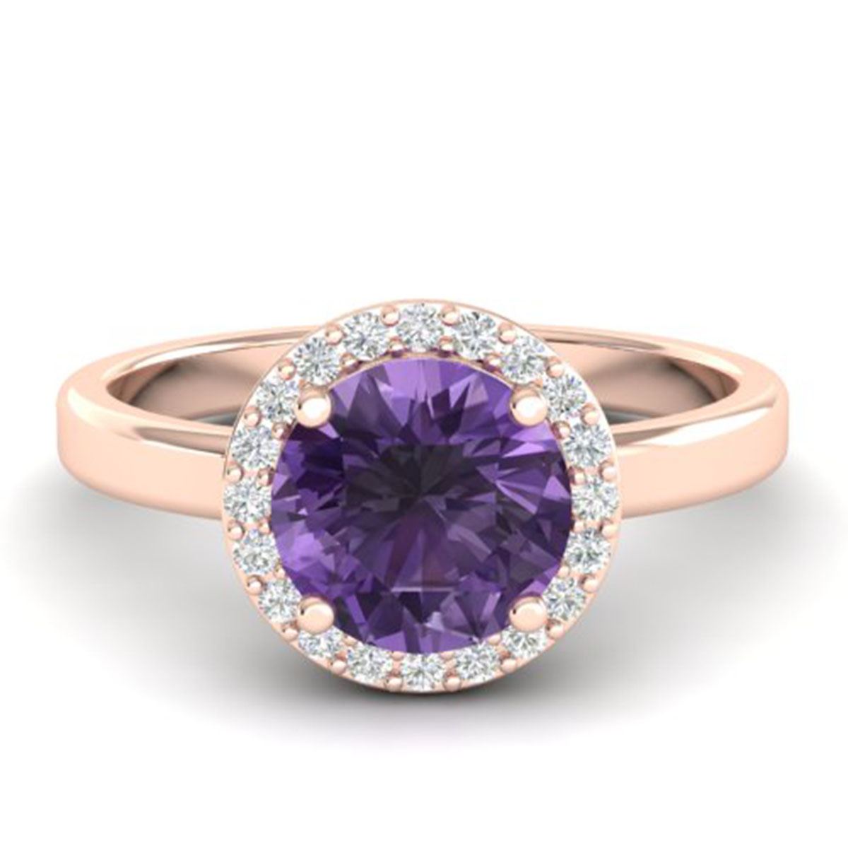 REF-40M2F - SKU:21616 ---- 2 ctw Amethyst & Halo VS/SI Diamond Ring 14K Rose Gold