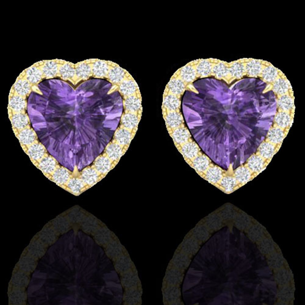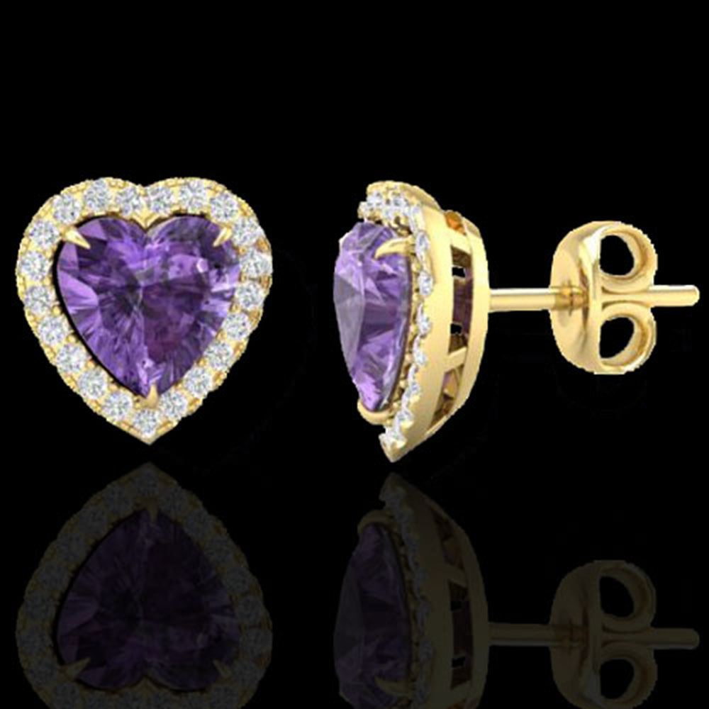 REF-38M2G - SKU: 21200 ---- 2 ctw Amethyst & Micro Pave VS/SI Diamond Earrings Heart 14k Yellow Gold