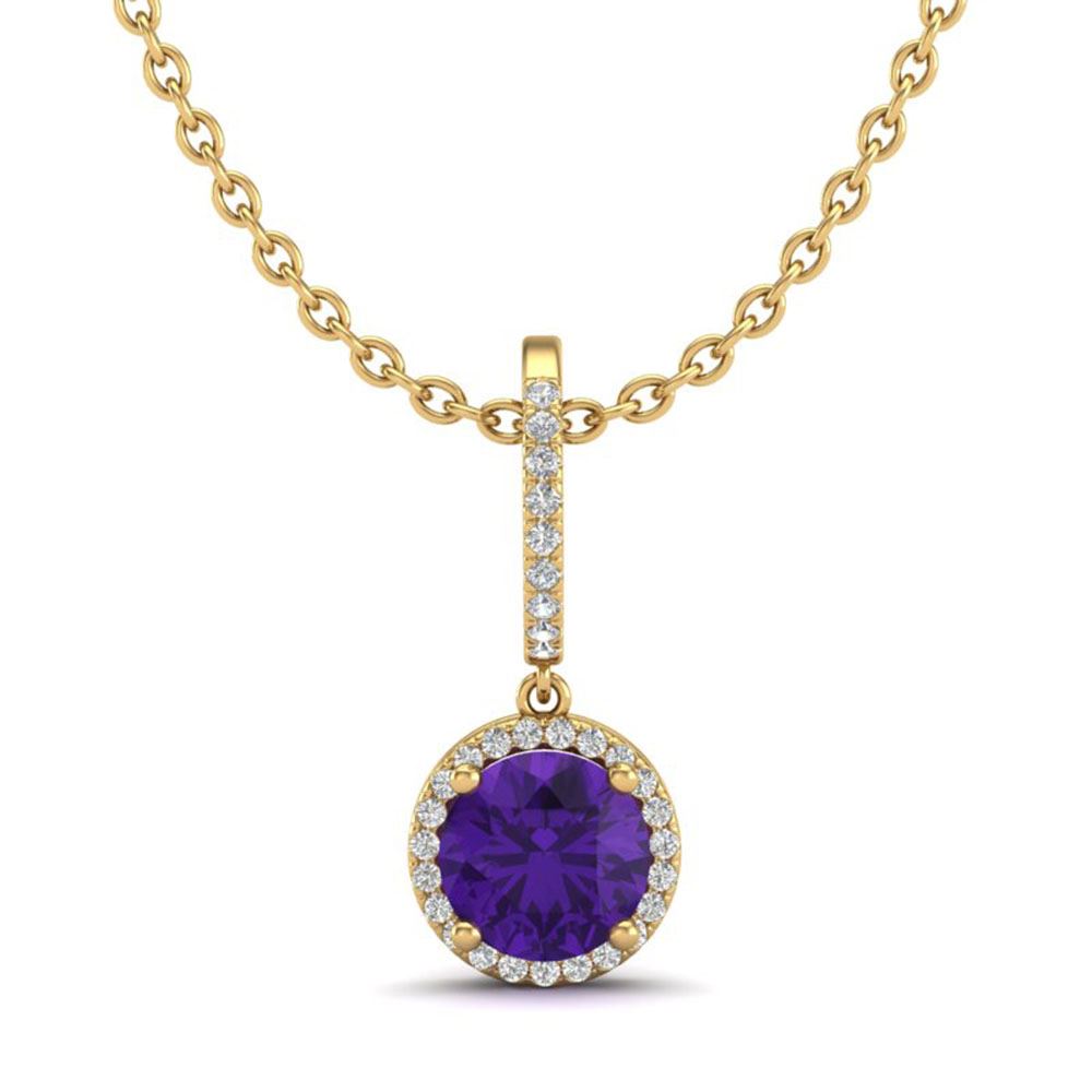 REF-42R4K - SKU: 23191 ---- 2 ctw Amethyst & Micro Pave VS/SI Diamond Necklace 18k Yellow Gold