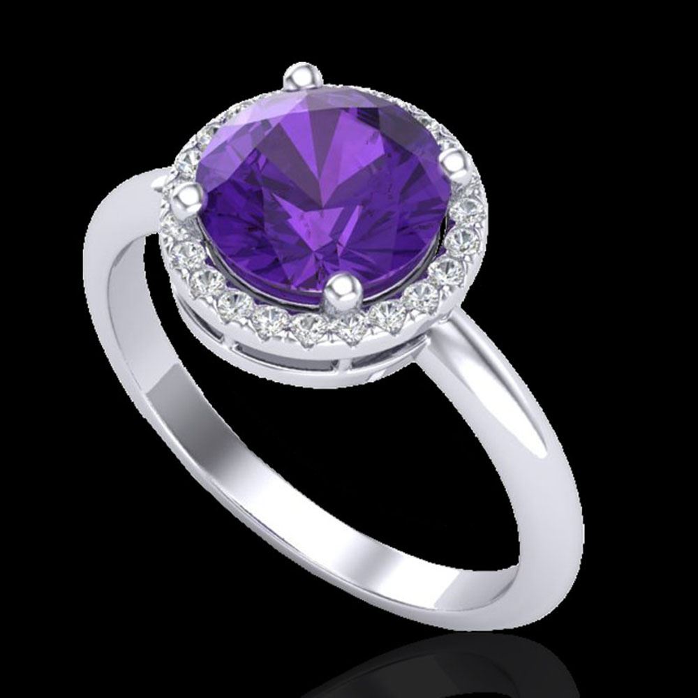 REF-45X2A - SKU: 23203 ---- 2 ctw Amethyst & Micro Pave VS/SI Diamond Ring 18k White Gold