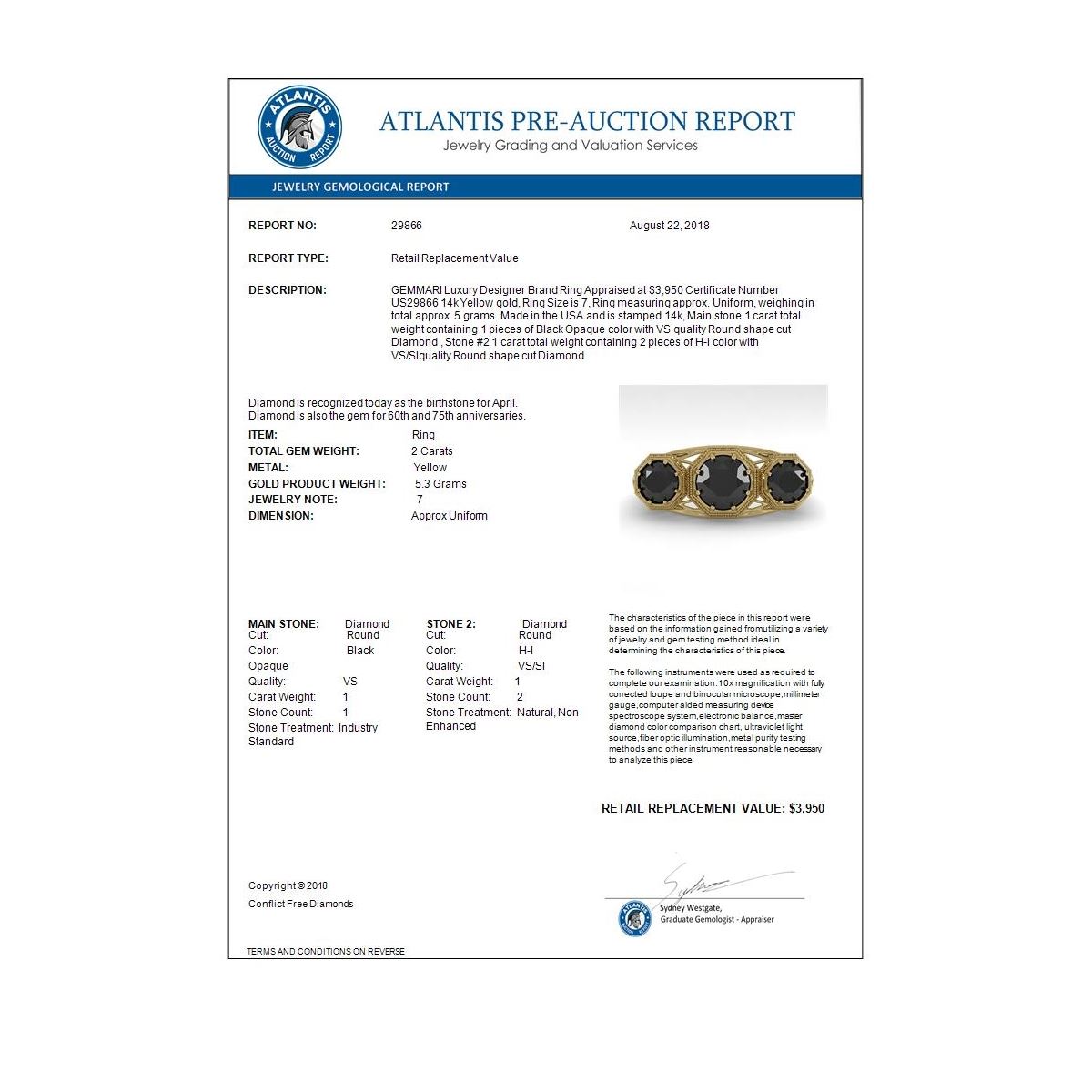 Bidders agree to pay a 19% buyer's premium added to the hammer price of the lot being auctioned. Condition reports and/or Gemological reports in Auction catalog are not guaranteed and may vary in accuracy. It is the responsibility of prospective bidders to inspect the goods. All reports, measurements, opinion of values, age and quality are offered by Oxford Auction but are not guaranteed. Neither the auction house, nor the consignor, is responsible for the accuracy of printed or verbal descriptions or its authenticity. All jewelry items sold by Oxford Auction are evaluated by third party appraisal firms where certified GIA gemologists evaluate the weight, size and grade of gemstone and/or metal to determine the replacement value of the item. Please be advised that all appraisals are done for insurance purposes only and do not determine the actual value of the jewelry on auction. The appraisals are done for the sole purpose of protecting the buyer in the event of damage or loss of purchased jewelry items from Oxford Auction. Oxford Auction is not responsible for the opinions and appraisals of any third party appraisal firms and their experts.