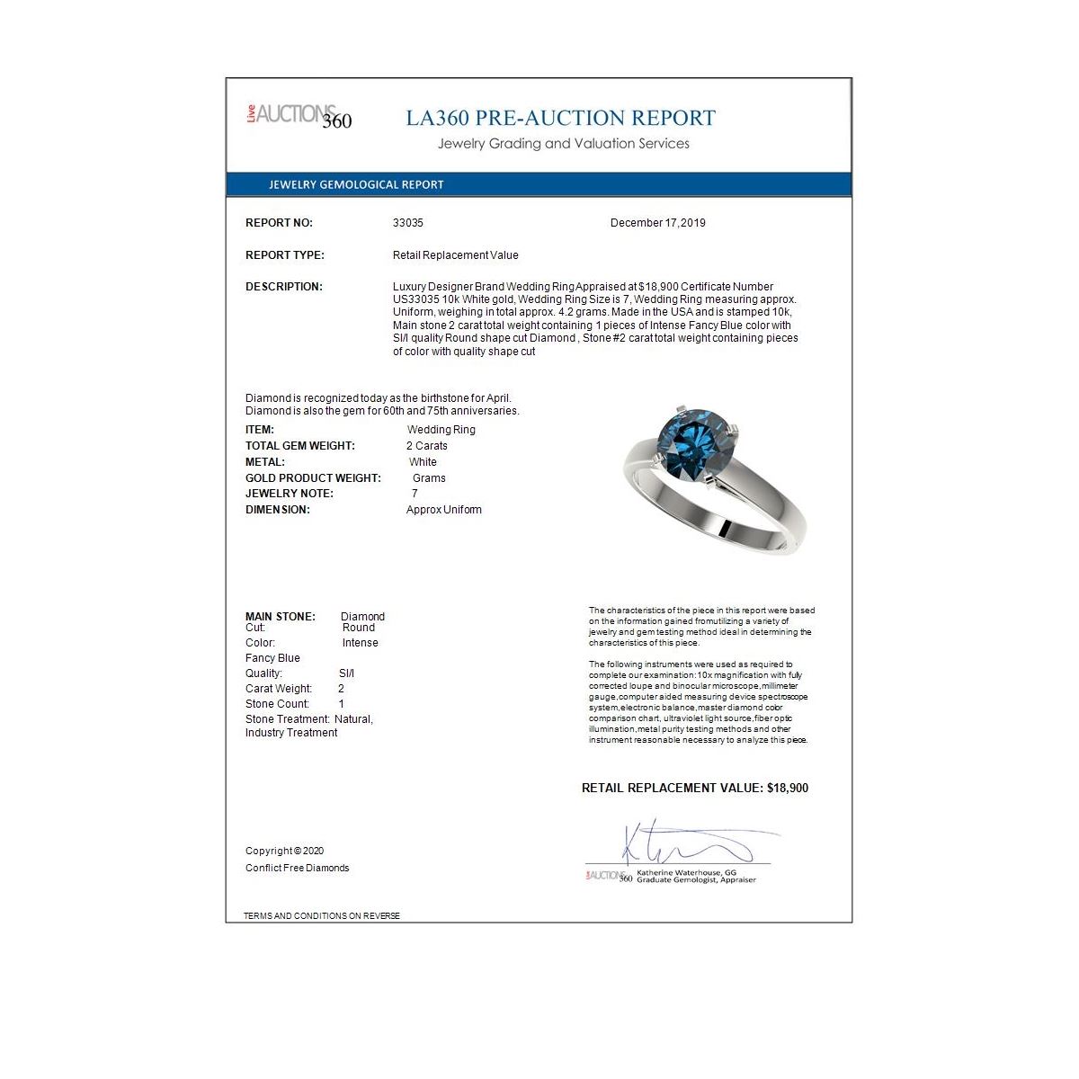 REF-331H4R - SKU: 33035 ---- 2 ctw Certified Intense Blue Diamond Engagment Ring 10k White Gold