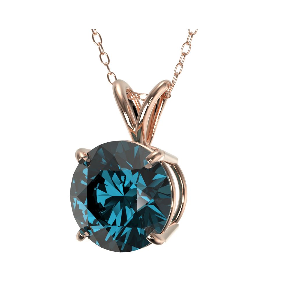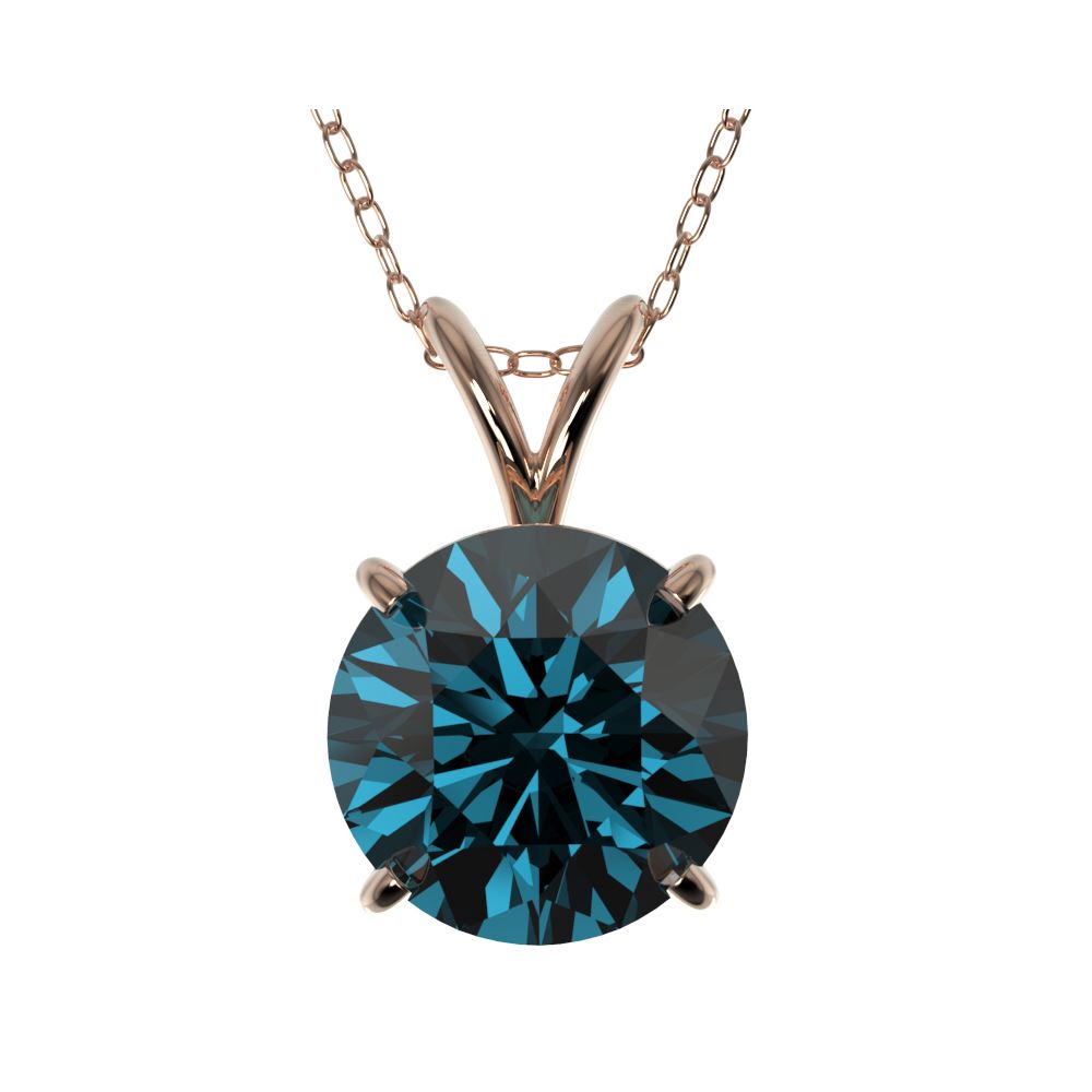2 ctw Certified Intense Blue Diamond Solitaire Necklace 10K Rose Gold