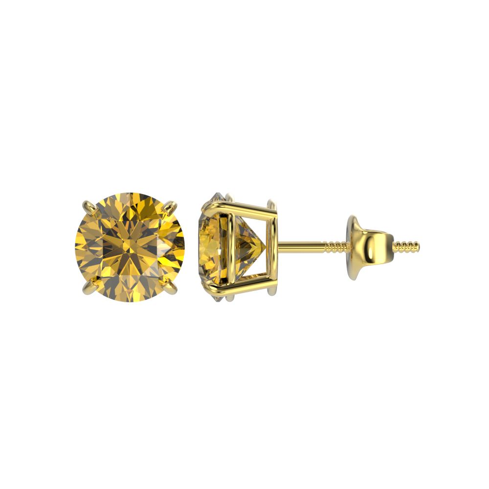 2 ctw Certified Intense Yellow Diamond Stud Earrings 10K Yellow Gold