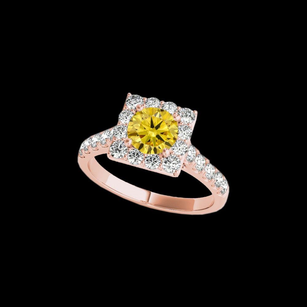 2 ctw Certified SI/I Fancy Intense Yellow Diamond Halo Ring 10K Rose Gold