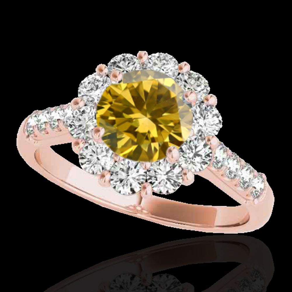 REF-225X2A - SKU: 33426 ---- 2 ctw Certified SI/I Fancy Intense Yellow Diamond Halo Ring 10k Rose Gold