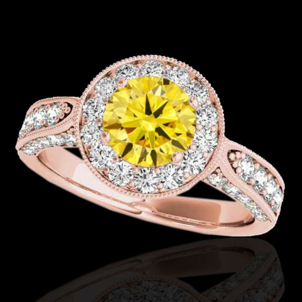 SKU: 34503 ---- 2 ctw Certified SI/I Fancy Intense Yellow Diamond Halo Ring 10k Rose Gold