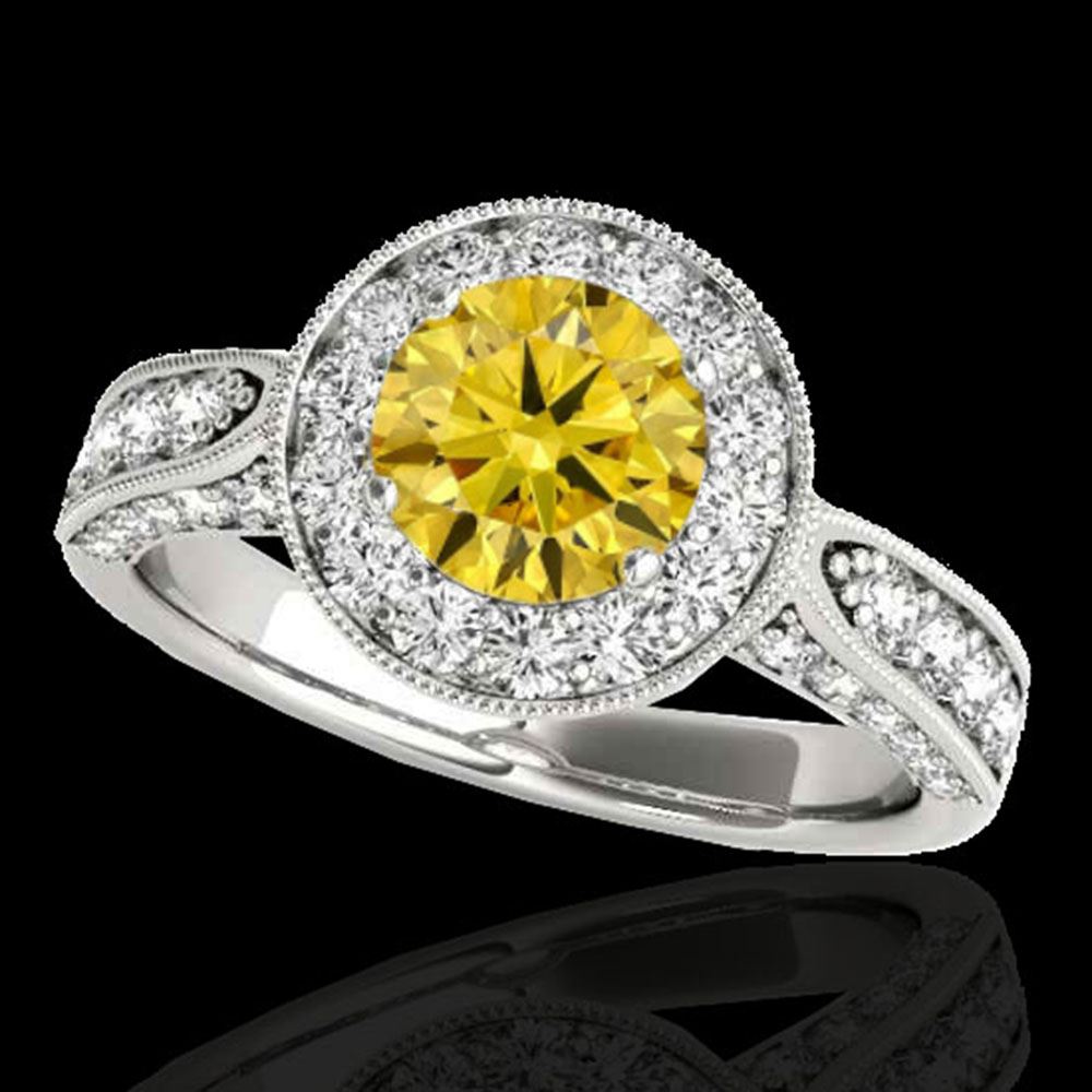 REF-225N2F - SKU: 34502 ---- 2 ctw Certified SI/I Fancy Intense Yellow Diamond Halo Ring 10k White Gold