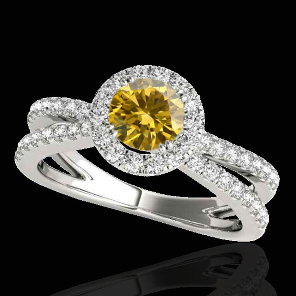 REF-252M3G - SKU: 33862 ---- 2 ctw Certified SI/I Fancy Intense Yellow Diamond Halo Ring 10k White Gold