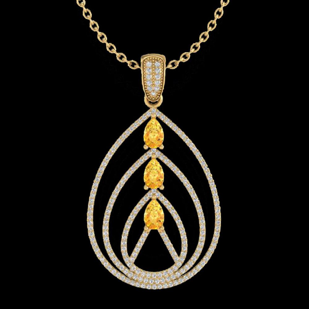 REF-163H6R - SKU: 22466 ---- 2 ctw Citrine & Micro Pave VS/SI Diamond Necklace 18k Yellow Gold
