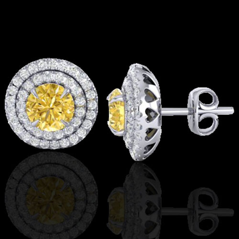 REF-85F5M - SKU: 21467 ---- 2 ctw Citrine & Micro Pave VS/SI Diamond Stud Earrings 18k White Gold