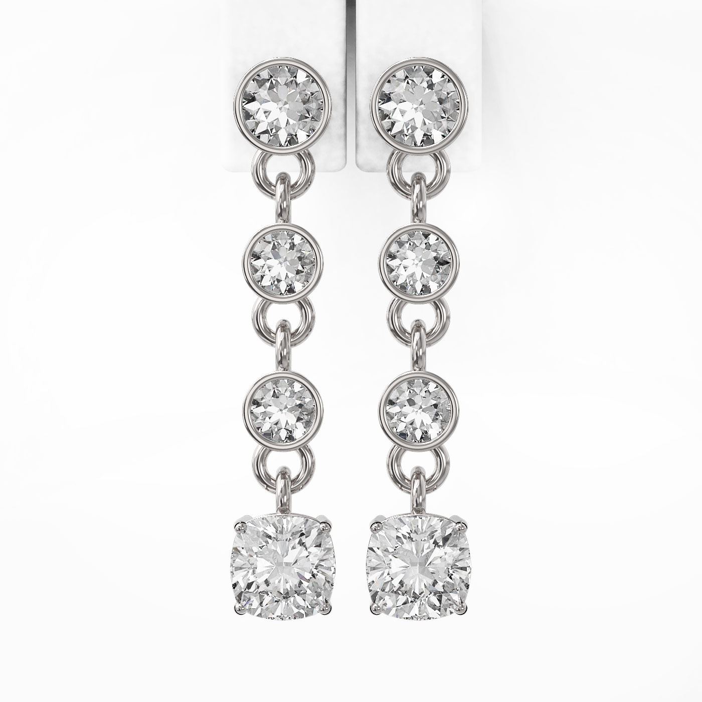 2 ctw Cushion Cut Diamond Designer Earrings 18K White Gold