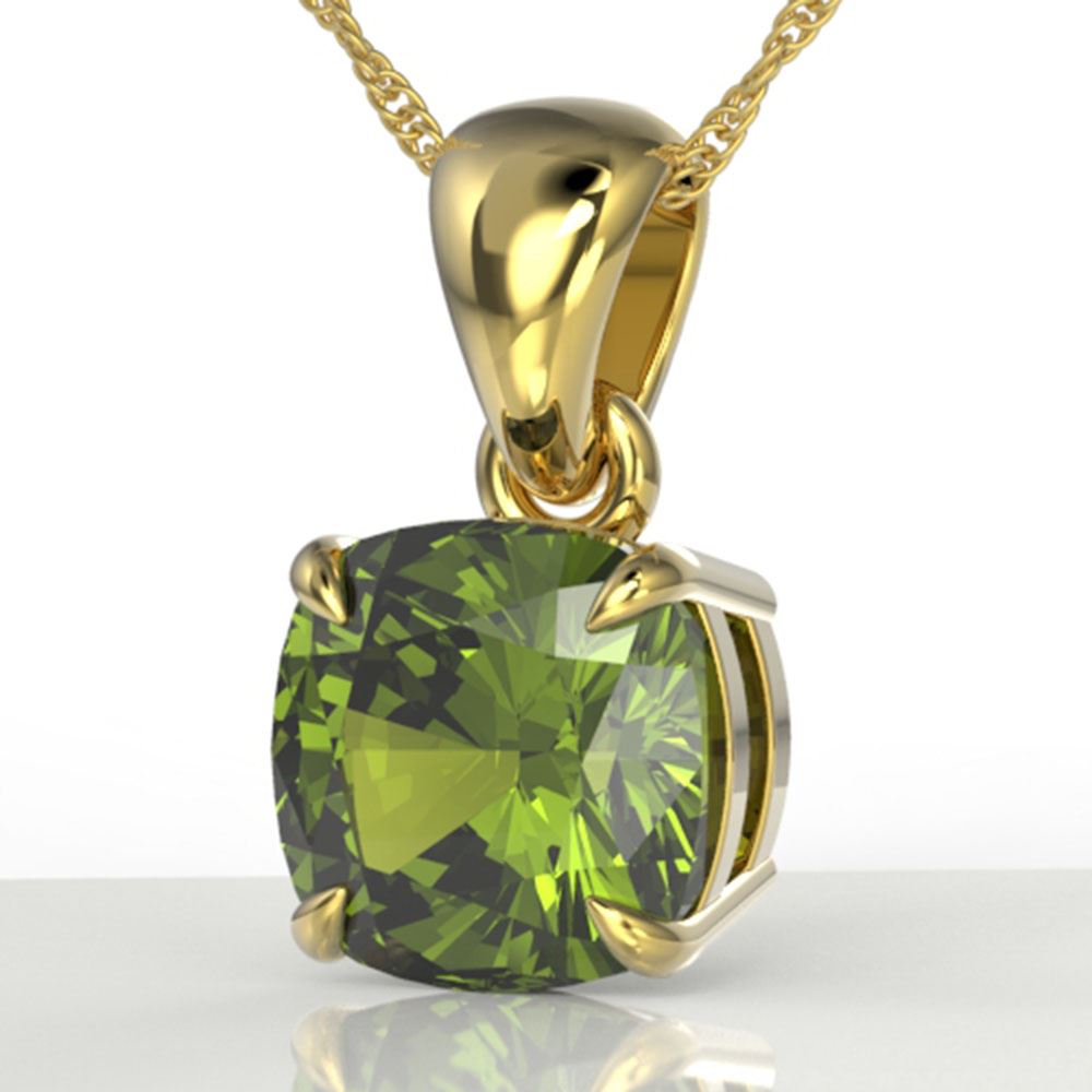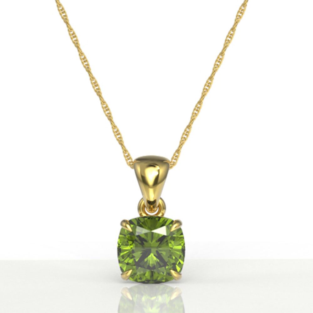 REF-30X2A - SKU: 21947 ---- 2 ctw Cushion Cut Green Tourmaline Designer Necklace 18k Yellow Gold