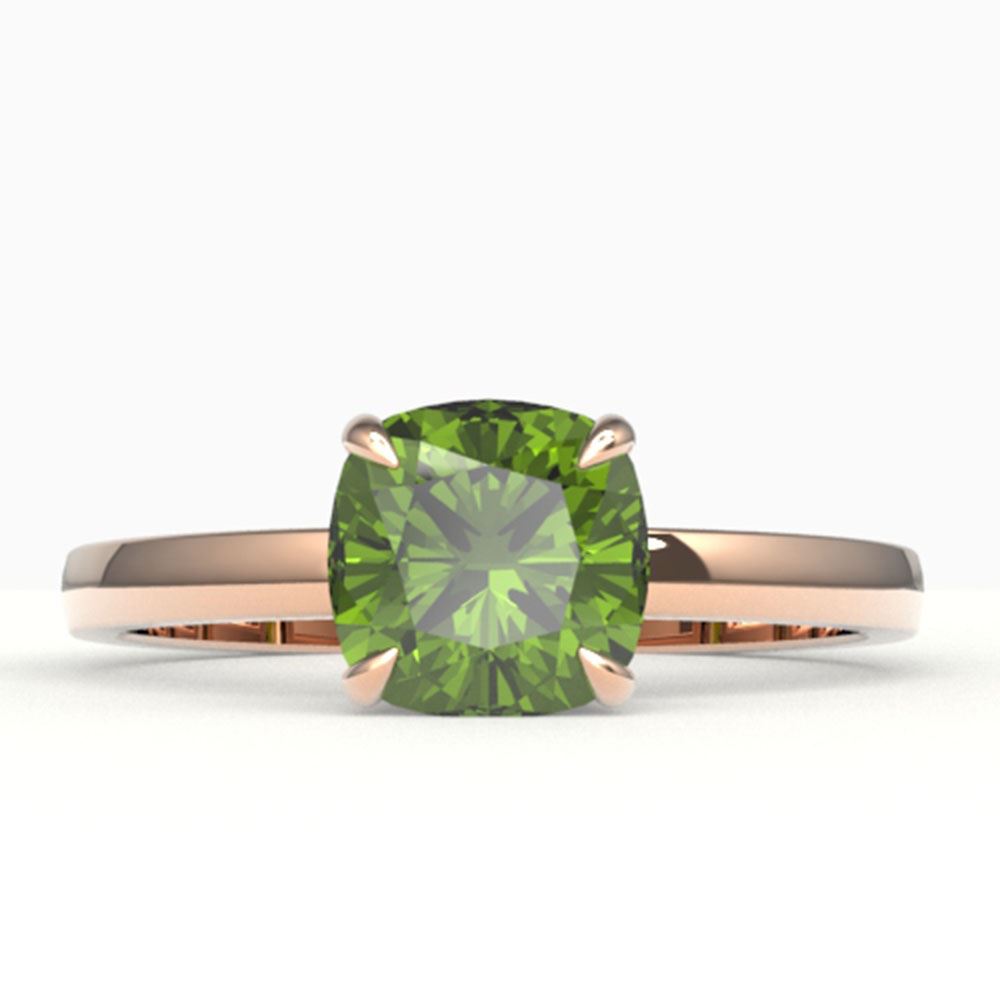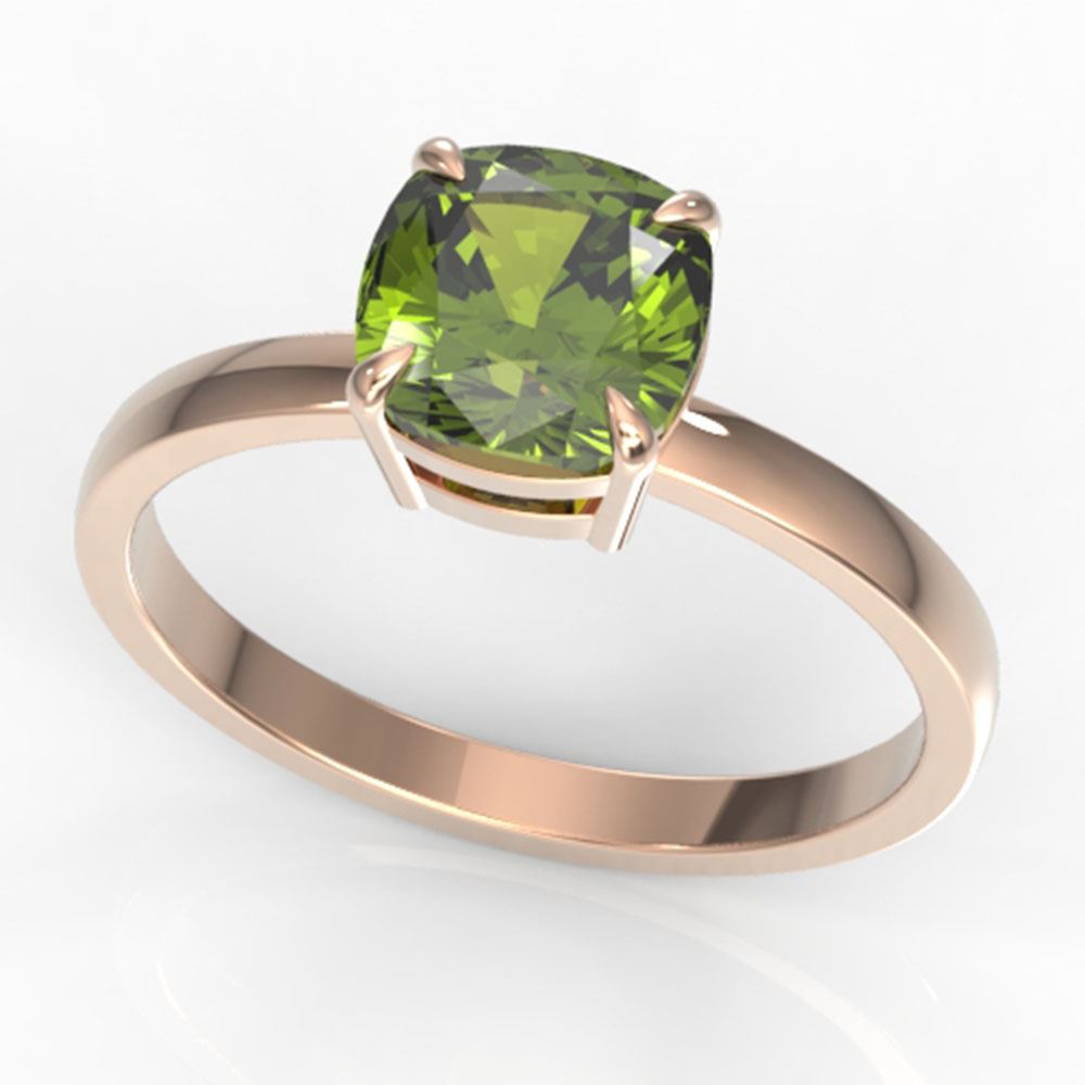 REF-22X8A - SKU: 22145 ---- 2 ctw Cushion Cut Green Tourmaline Solitaire Engagment Ring 14k Rose Gold