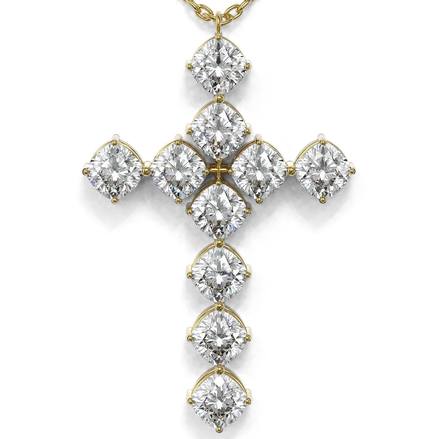 SKU: 48278 ---- 2 ctw Cushion Diamond Designer Cross Necklace 18K Yellow Gold