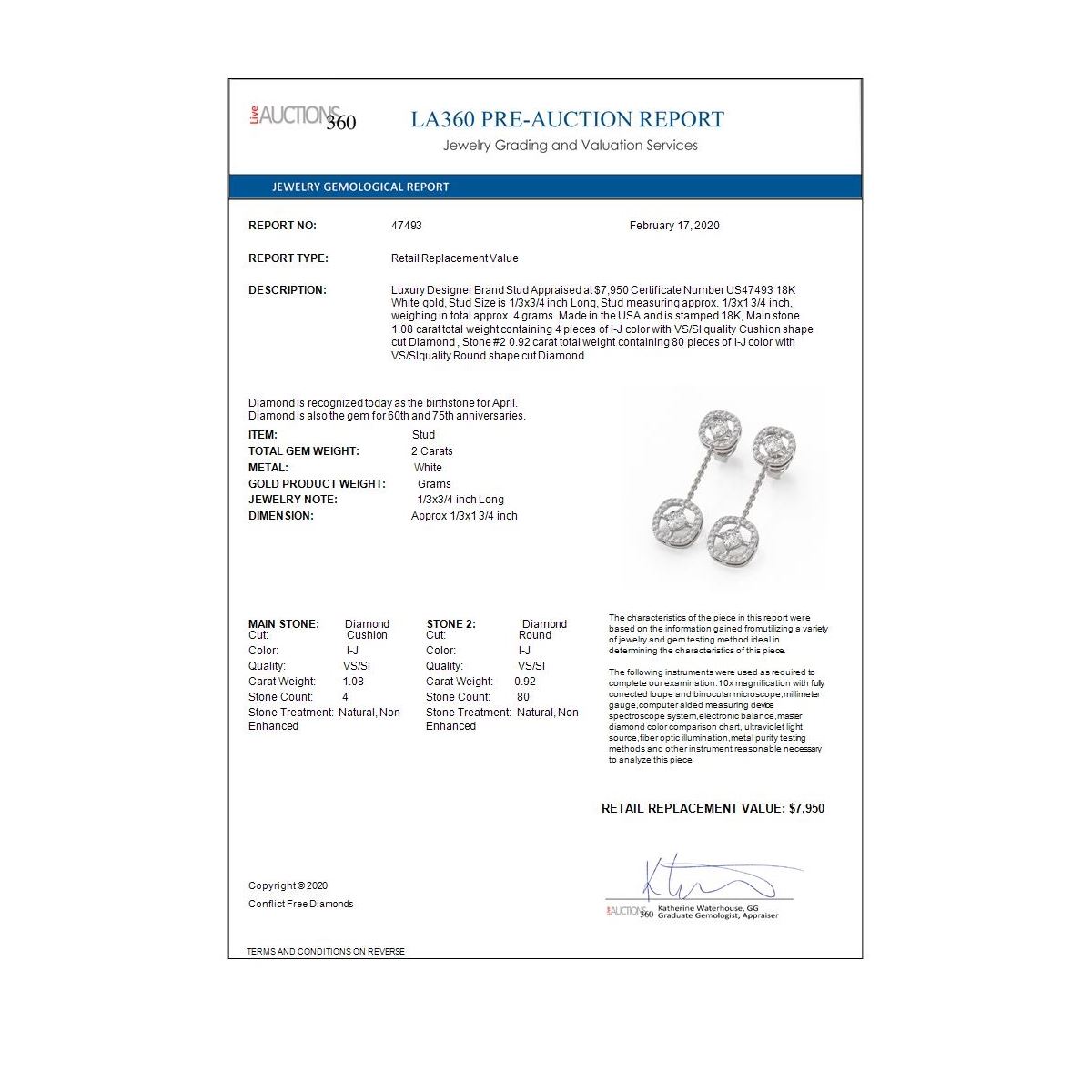 All sales are final, placing a bid is a legally binding obligation. All lots are sold as is, where is, with all the faults, imperfections, omissions and errors in the written description, estimates, appraisals, graphics and photography. USJL is not responsible for any errors or omissions in the description, graphics or photography provided or in the bidding software. Due diligence to verify the condition and description of a lot is the sole responsibility of the Bidder prior to placing any bid. Returns may only be made with the advance written authorization of USJL and are in USJL's sole discretion to approve. To request a return you must provide a written request fully explaining the basis for the return no later than 4 days after your receipt of the lot. Under no circumstances will any amounts other than the winning bid amount be refunded. A restocking charge of 19% of the full invoice amount may apply in USJL 's sole discretion. Any allowed returns must be received in exactly the same condition as when originally shipped to Buyer, or they will be returned to buyer at Buyer's cost. Any unauthorized returns will be refused. DELIVERY REFUSAL OF ITEMS SHIPPED BY US JEWELRY LIQUIDATION TO THE BIDDER CONSTITUTES AN UNAUTHORIZED RETURN IN DIRECT VIOLATION OF THESE GENERAL TERMS AND CONDITIONS.