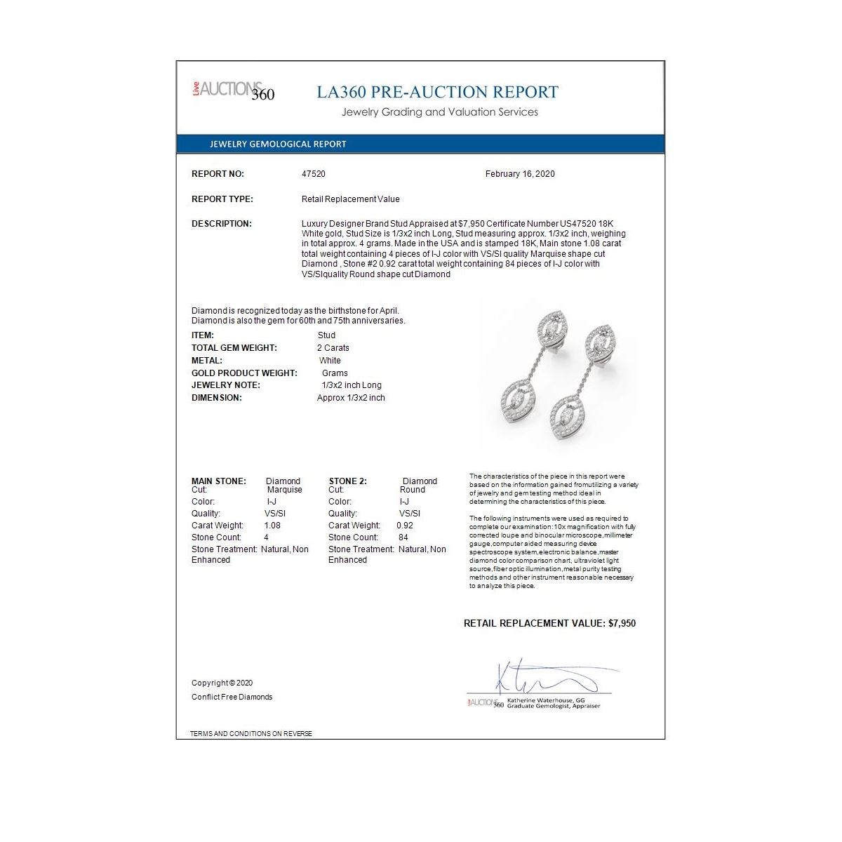 All sales are final, placing a bid is a legally binding obligation. All lots are sold as is, where is, with all the faults, imperfections, omissions and errors in the written description, estimates, appraisals, graphics and photography. USJL is not responsible for any errors or omissions in the description, graphics or photography provided or in the bidding software. Due diligence to verify the condition and description of a lot is the sole responsibility of the Bidder prior to placing any bid. Returns may only be made with the advance written authorization of USJL and are in USJL's sole discretion to approve. To request a return you must provide a written request fully explaining the basis for the return no later than 4 days after your receipt of the lot. Under no circumstances will any amounts other than the winning bid amount be refunded. A restocking charge of 19% of the full invoice amount may apply in USJL 's sole discretion. Any allowed returns must be received in exactly the same condition as when originally shipped to Buyer, or they will be returned to buyer at Buyer's cost. Any unauthorized returns will be refused. DELIVERY REFUSAL OF ITEMS SHIPPED BY US JEWELRY LIQUIDATION TO THE BIDDER CONSTITUTES AN UNAUTHORIZED RETURN IN DIRECT VIOLATION OF THESE GENERAL TERMS AND CONDITIONS.