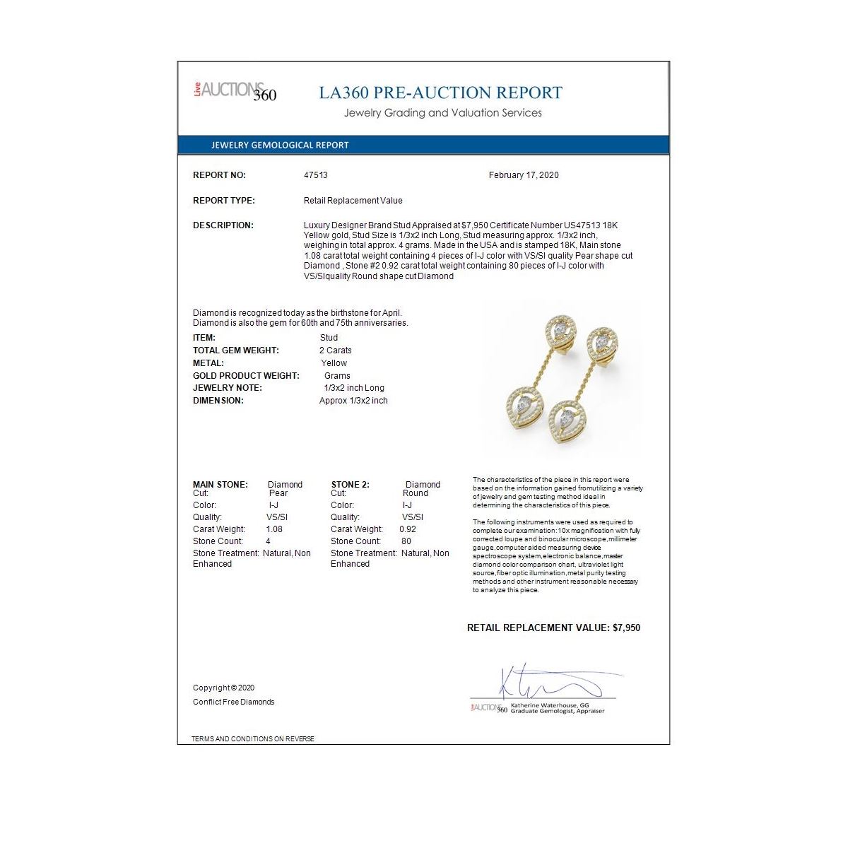 REF-240K8Y - SKU: 47513 ---- 2 ctw Diamond Designer Earrings 18K Yellow Gold