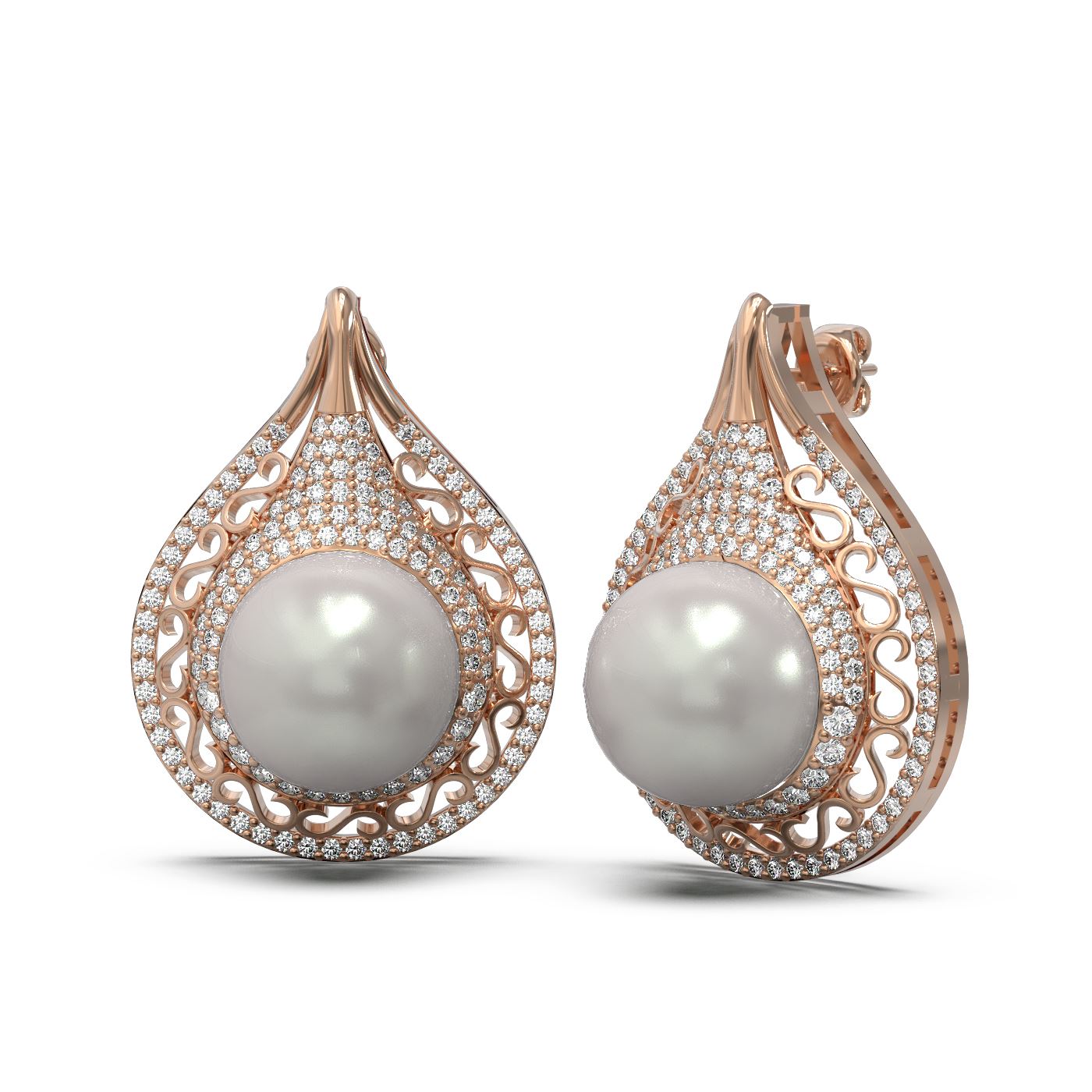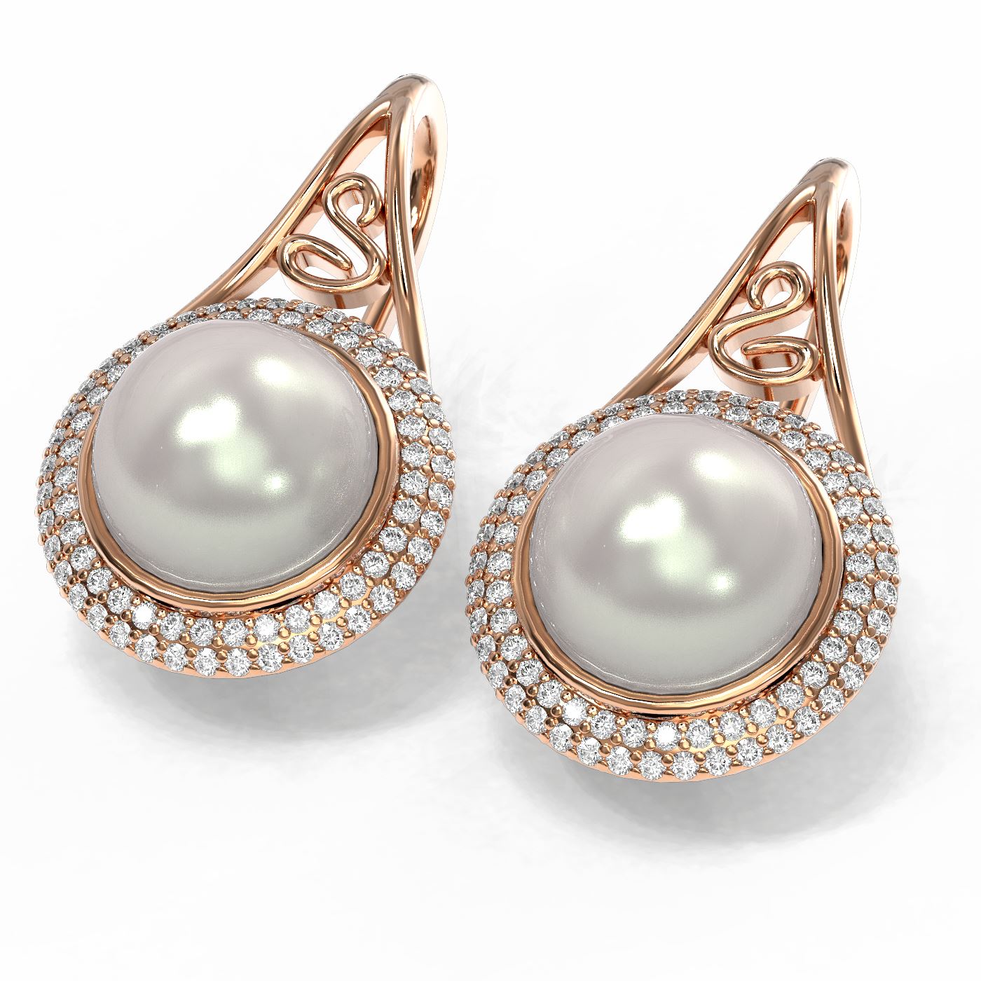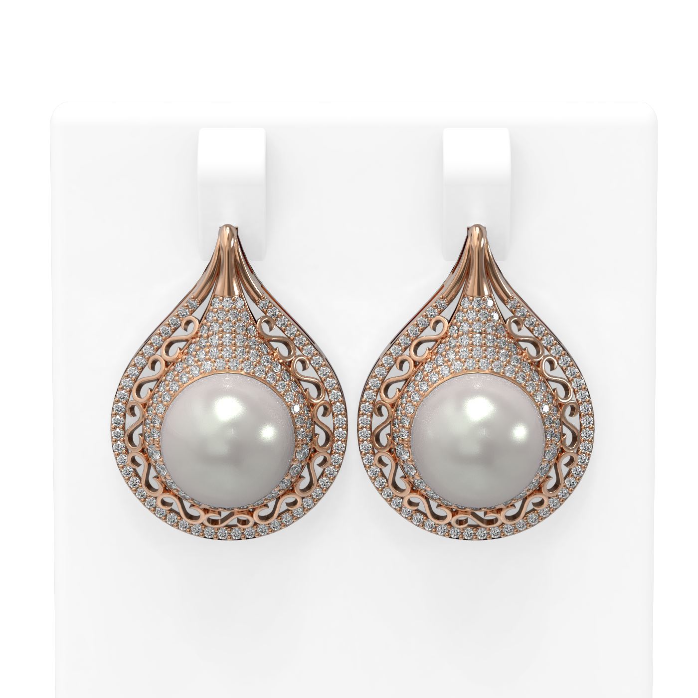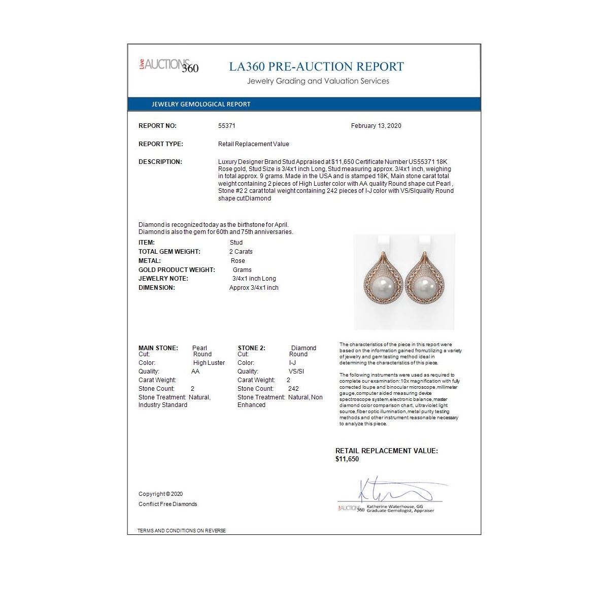 REF-235N5F - SKU: 55371 ---- 2 ctw Diamond & Pearl Earrings 18K Rose Gold
