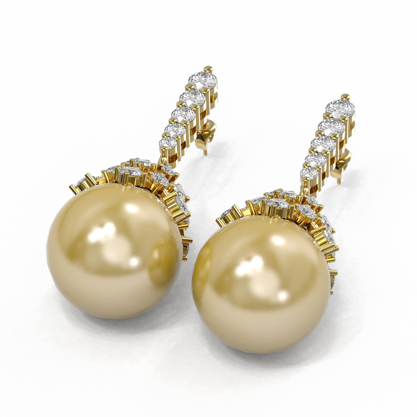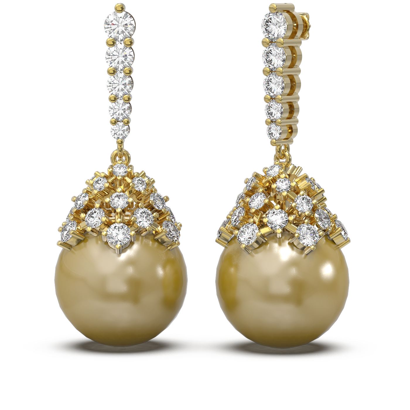 REF-161G3W - SKU: 60538 ---- 2 ctw Diamond & Pearl Earrings 18K Yellow Gold